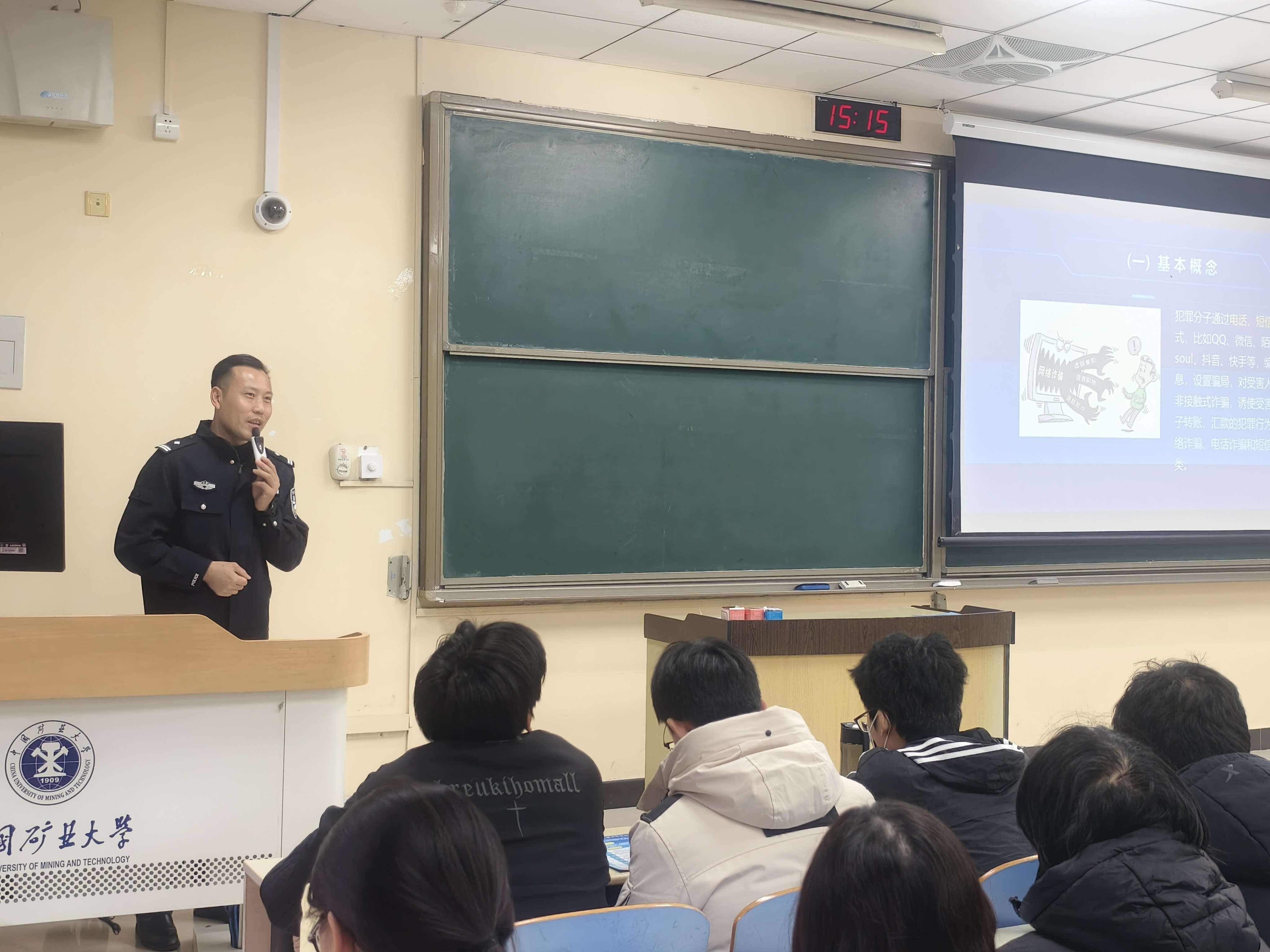 为切实增强学生防诈骗意识和自我保护能力,筑牢校园安全反诈防线,12月31日,污污漫画特邀徐州市公安局刑侦支队民警刘磊于博四A103为2023级本科生开展反诈科普讲座。