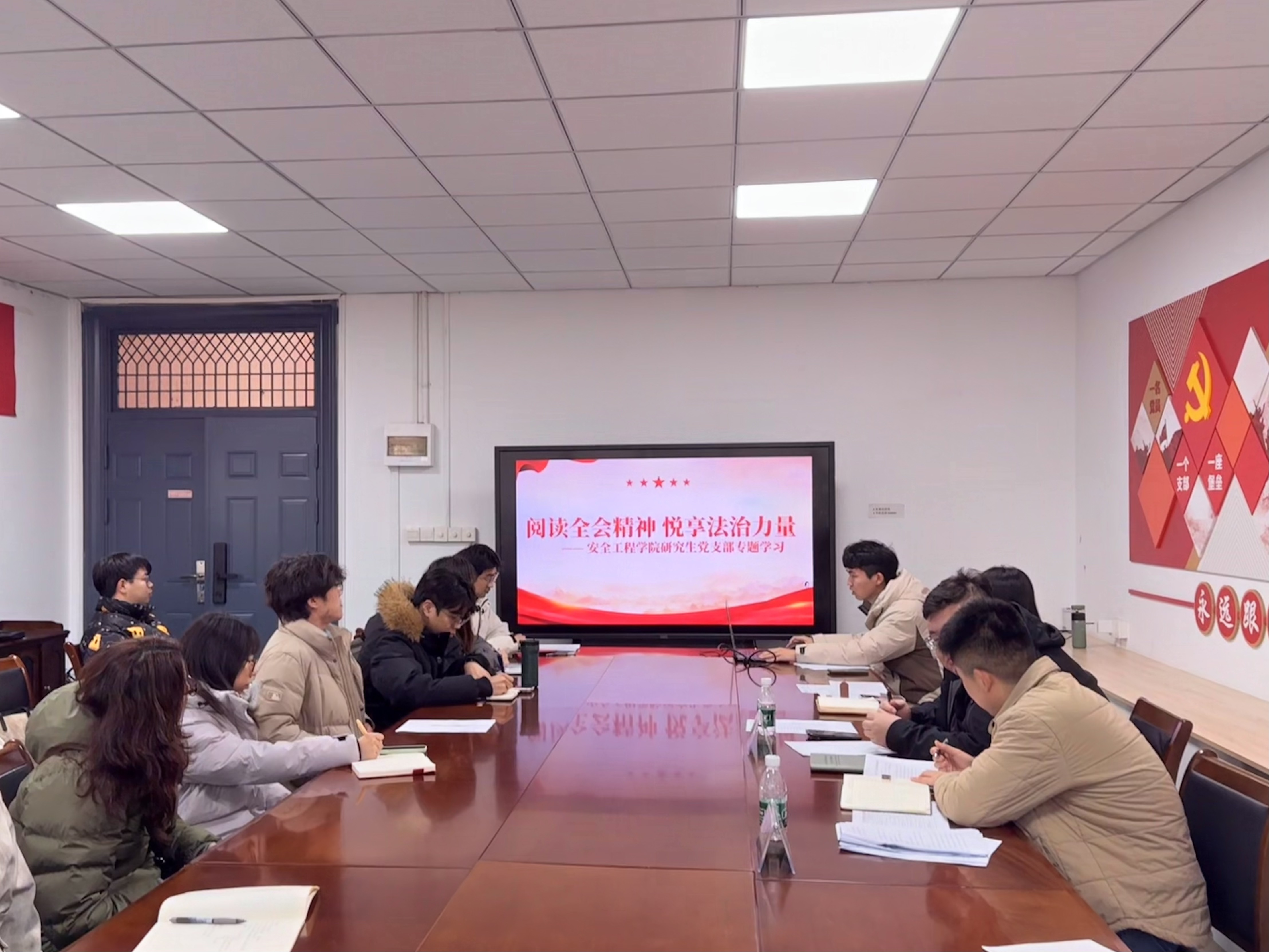 为深入学习党的二十届四中全会精神,把握习近平法治思想核心要义,强化研究生党员理论武装与使命担当,1月7日下午,污污漫画在矿业科学中心A322会议室举办“阅读全会精神·悦享法治力量”专题学习会。学工办主任刘世通、辅导员魏铁飚出席,各学生党支部书记、副书记参会,会议由兼职辅导员魏嘉辰主持并领学。