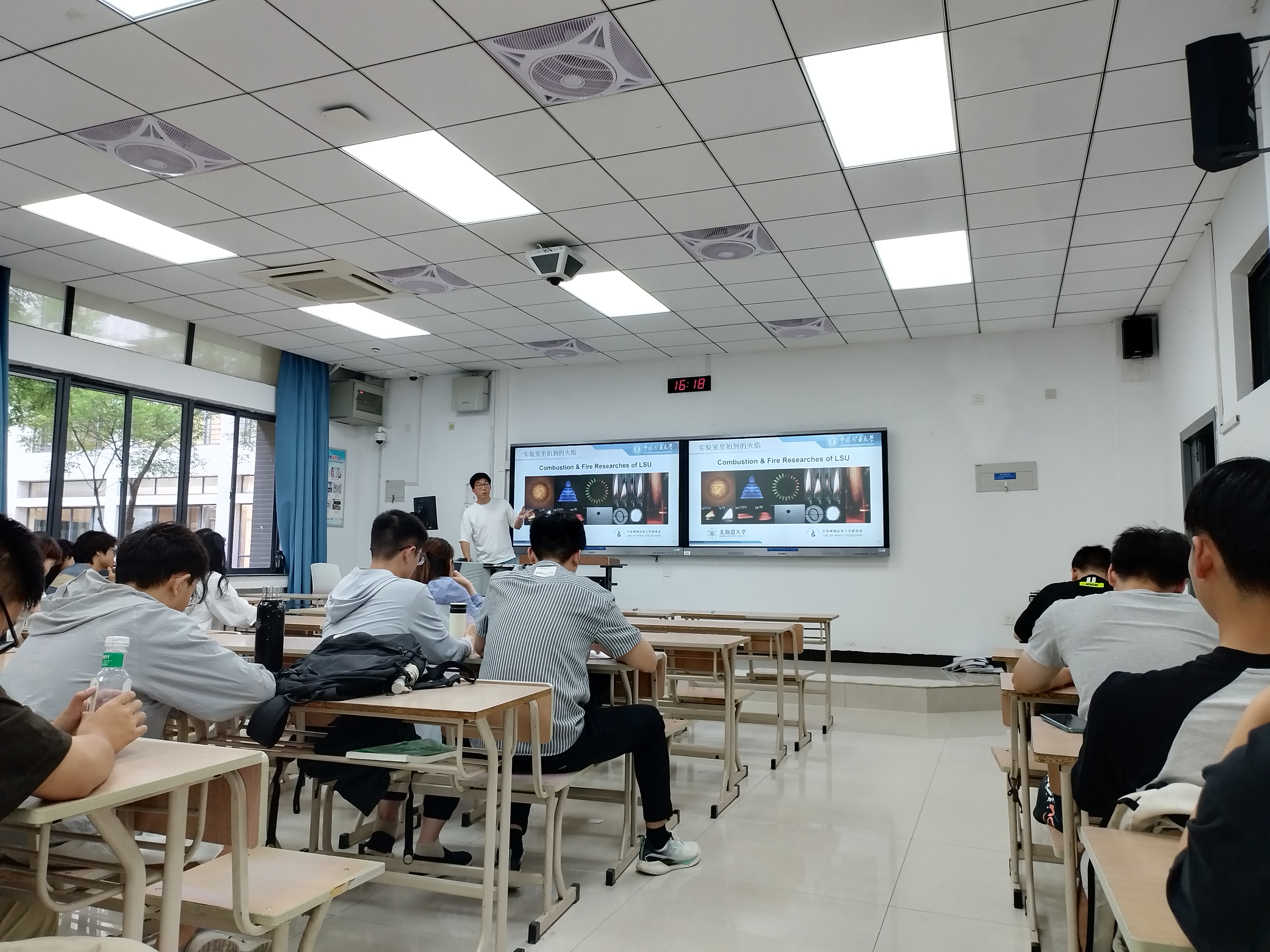 讲座伊始,郭峰老师首先分享了自己在本科、硕士、博士以及博士后阶段分别在矿大、日本北海道大学的求学经历,用自己在学习科研过程中的亲身经历和科研经验来启发大家对未来的进一步规划。之后,郭峰老师介绍了自己对消防专业的理解和以及对于同学们关于专业的疑问进行细致的解答。接着,行政班主任何老师就郭老师的发言进行了补充,也介绍了自己的求学求职经历,针对大家未来的就业、升学、科研做出了不同的方向性的建议,对广大正在准备考研的同学进行了鼓励。在问答座谈环节中,郭老师和同学们进行了深入的交流,同学们表示收获很多,虽然有焦虑和迷茫,但是对自己未来的规划也产生了更多的思考和修正。