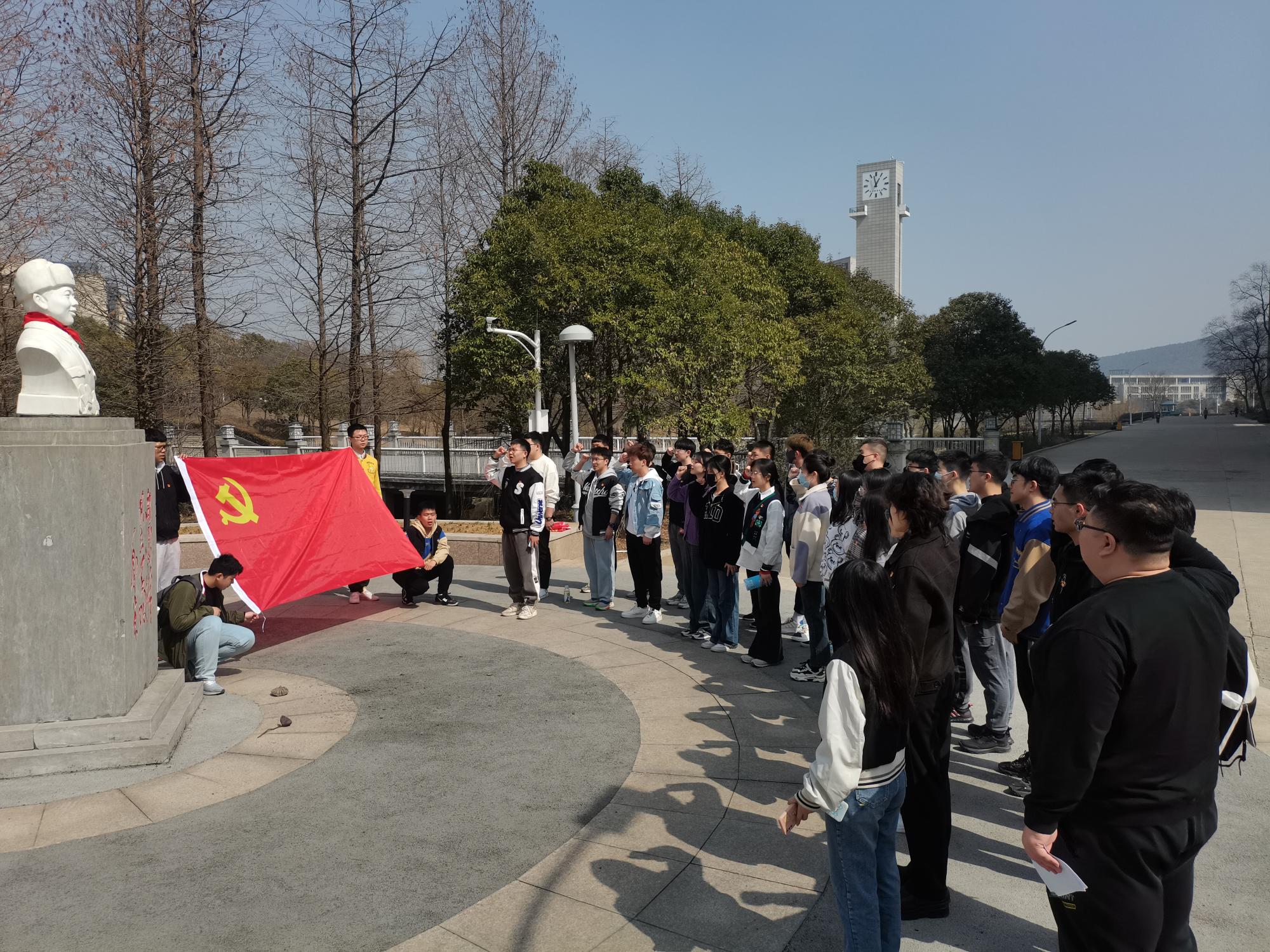 学生党员工作站组织本科生党员们进入博四楼、博五楼中的阶梯教室整理废旧书籍,将随意堆放在教室前后门、楼道内直饮水机附近无人认领的书籍按照大小、科目等分类,整理好后整齐堆码在原先位置,同时整理了负责区域的杂物。志愿活动后,参与活动的党员到博一楼雷锋塑像处集合,辅导员刘世通老师带领到场的党员面对党旗和雷锋像集体宣誓,重温入党誓词。随后,刘老师结合雷锋精神为党员们上了一堂微党课,他表示:提到雷锋精神大家往往想到的是奉献,但是学习雷锋不仅仅学习的是奉献精神,还有责任、守护、担当、勤俭、忘我、无私和进取七个方面。他告诫大家要时刻提醒自己是一名党员,将雷锋精神的几层内涵贯穿生活、学习、工作始终;同时也需要多学习、多实践,努力成为一名合格的共产党员。