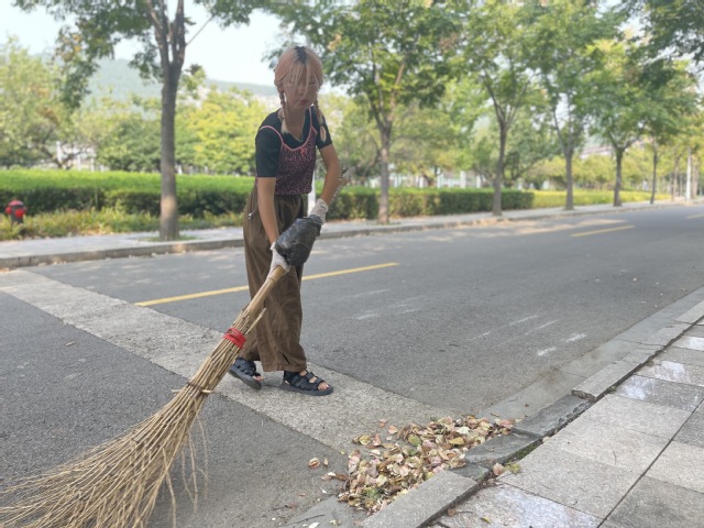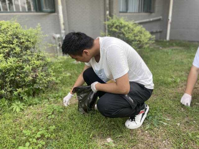 活动中,志愿者们对人行步道、草坪、灌木丛内的包装纸屑、枯枝烂叶等进行了集中清理。同学们手持竹扫帚,不怕苦、不怕累,对落叶进行了细心清扫,或躬身挤进灌丛与宿舍楼的间隙;或伸手探入灌木丛内,坚决不放过一处卫生死角。大家认真自觉、尽职尽责,在骄阳下反反复复地检查周围是否有遗漏之处。通过一个多小时的努力,便将宿舍楼周边整理得干净整洁、焕然一新。活动的最后,大家一起拍了张合照,努力发扬“安不可忘危,人不可忘劳”的精神,为本次志愿活动画上了圆满的句号。