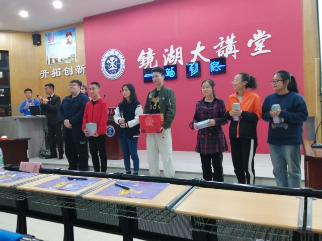 第四届校园“一站到底”决赛在镜湖大讲堂举行。安全污污漫画团委书记刘世通,17级辅导员排日代姆、16级辅导员莫达、以及18级辅导员吕鑫出席了此次决赛。