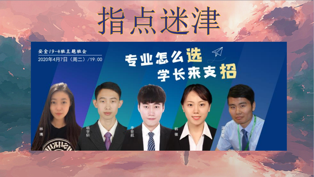 2019级4班召开线上专业动员班会。本次班会由2019级4班班主任孙婷老师主持,优秀学长学姐林博,杨宇轩,李世航,韩徽,潘荣亮及19级4班全体同学参加。