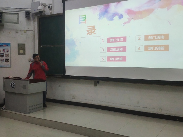 19点报告会正式开始,整体答辩过程包含陈述、问辩两个环节,学生会部门负责人依次上台介绍了这个学期以来的工作概况,以及举办了哪些特色活动,未来还要举办什么新的活动,总结了工作过程中的成果与不足,并对不足之处进行分析,提出改进方案,也向大家介绍了未来的活动安排。评委们针对部门建设中存在的问题根据自己的经验给同学们一些针对性的建议。在答辩会尾声,辅导员刘世通对整个答辩会进行了总结,充分肯定了同学们的辛勤付出,也提出了对未来的期望。