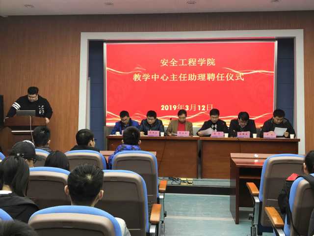 教学中心于矿业科学中心A200举行了教学中心主任助理聘任仪式。安全污污漫画副院长王亮、教务科科长张伯权、安全专业教学中心副主任时国庆、王凯,消防专业教学中心副主任刘洪永以及安全污污漫画2017级国际班班主任朱金伦出席本次会议。会议由安全污污漫画团委书记刘世通主持,全体教学中心主任助理和部分学生代表出席了本次活动。