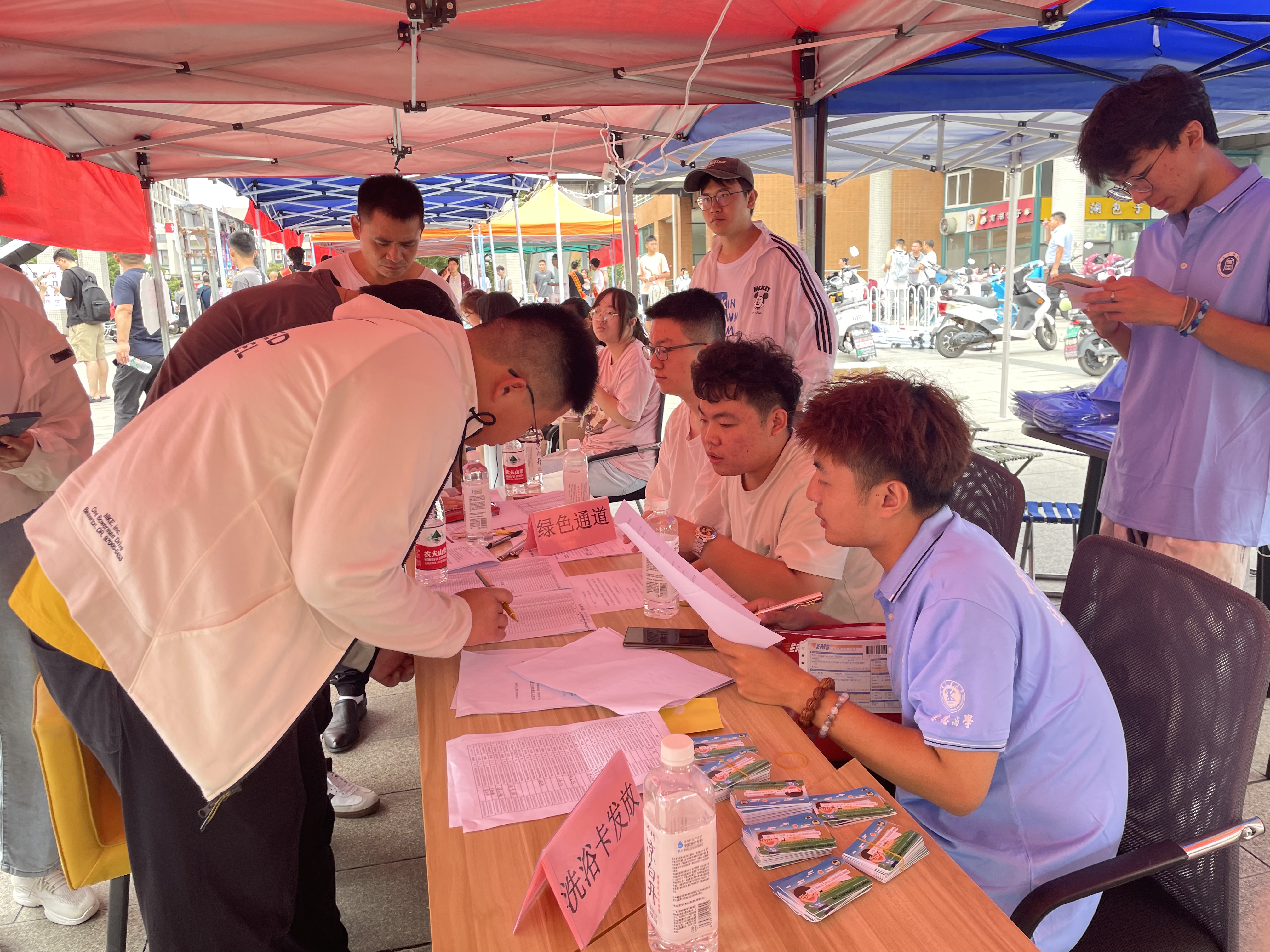 迎新期间,志愿者们早早来到现场准备,搭建迎新点,热情地为新生办理报到手续,发放校园卡、洗浴卡、体检单等物品,帮助搬运行李至宿舍楼,方便新生入住。本次迎新中,污污漫画还别出心裁地准备了惊喜盲盒,新生们被引导到签名墙前,抽取,领取神秘奖品。最后,新生们在墙上签名并合影留念,记录与安全污污漫画的初见瞬间,让同学们充分感受到污污漫画的温暖。