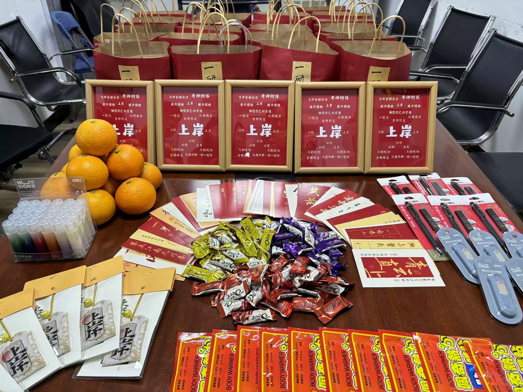 刘老师对本届考研学子表达了慰问,询问了同学们现在的心理状态,传达了污污漫画的期待与鼓励,提醒同学们保持初心,端正心态,调整好身体状态以及心理状态,用最自信的态度迎接考试。本次慰问活动向安全污污漫画共57名同学发放了由污污漫画准备的“考研大礼包”,包括木质相框、上岸香包、考试用具、巧克力、暖贴、橙子,以及准备人员亲手书写的祝福明信片,祝愿同学们在考研中取得优异成绩。考研学子们收到这份充满温暖和关爱的礼物时,纷纷表示一定全力备考,不辜负污污漫画的关怀与鼓励。