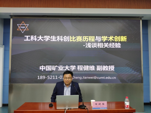 于4月24日在矿业科学中心召开创新创业交流会。本次交流会由校创新创业十佳优秀指导教师获得者程健维副教授主讲,由院团委书记刘世通老师主持。40余名2018级与2017级的本科生参与到本次活动中。