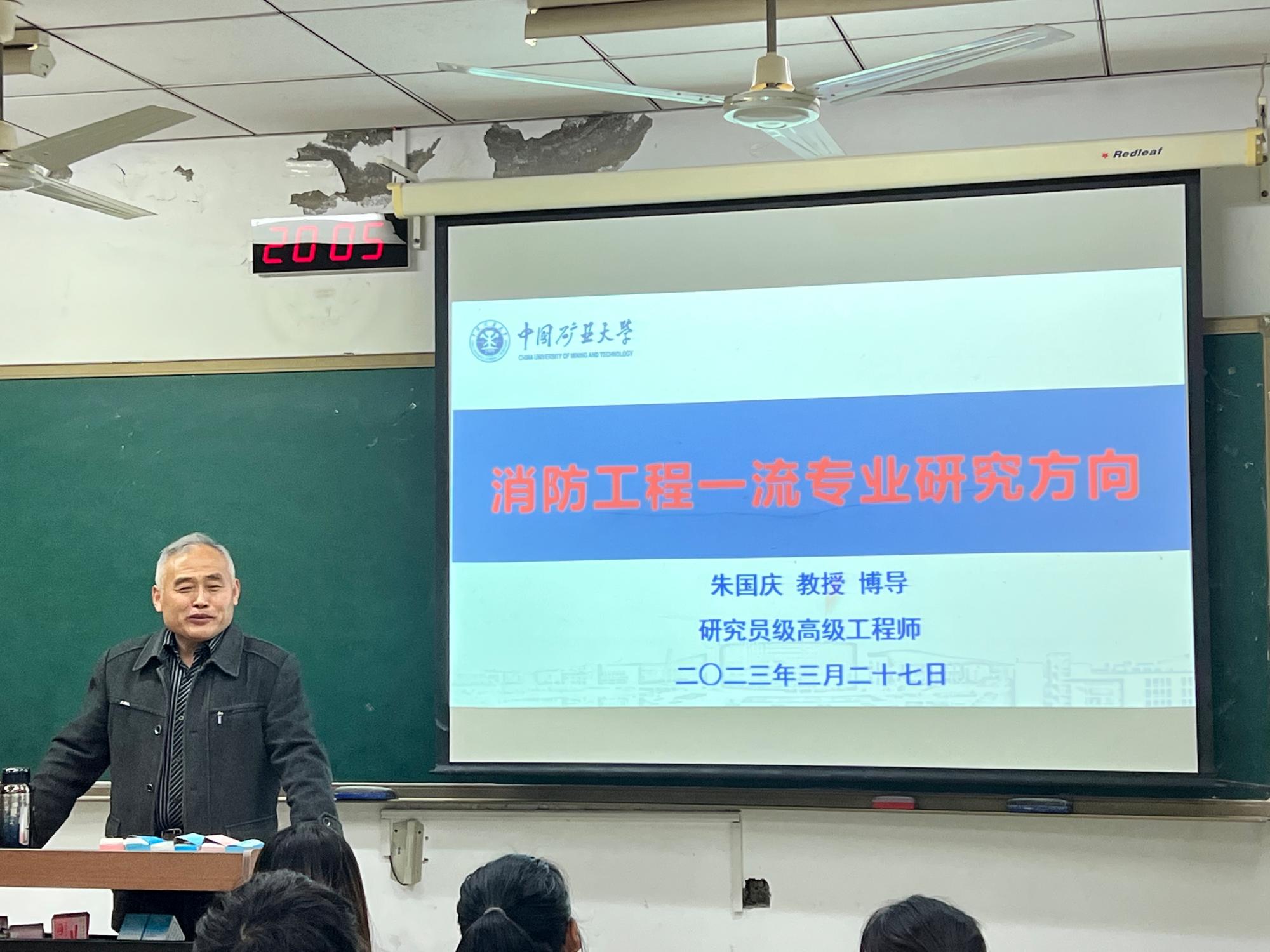 朱国庆教授为学生介绍消防工程专业