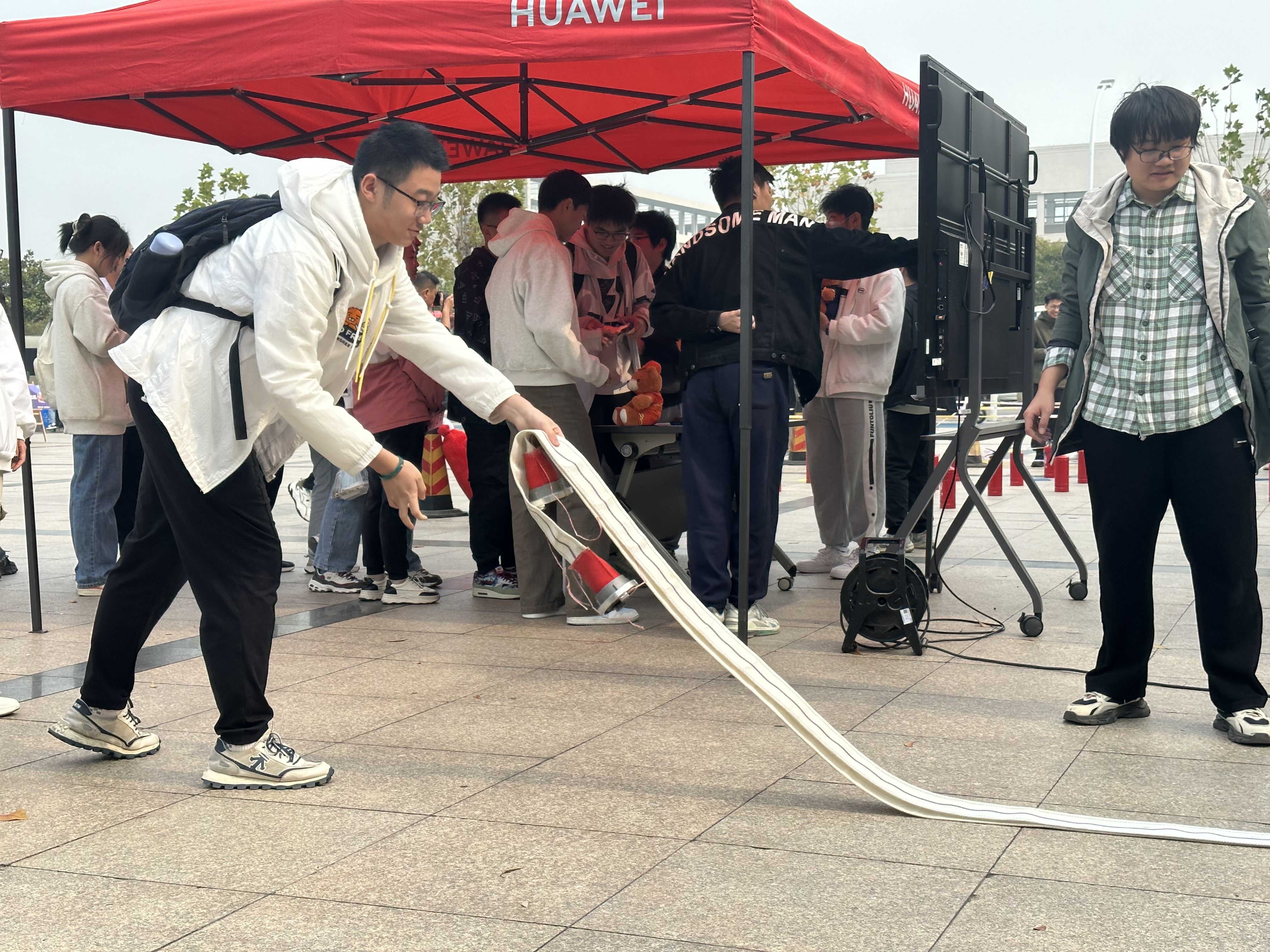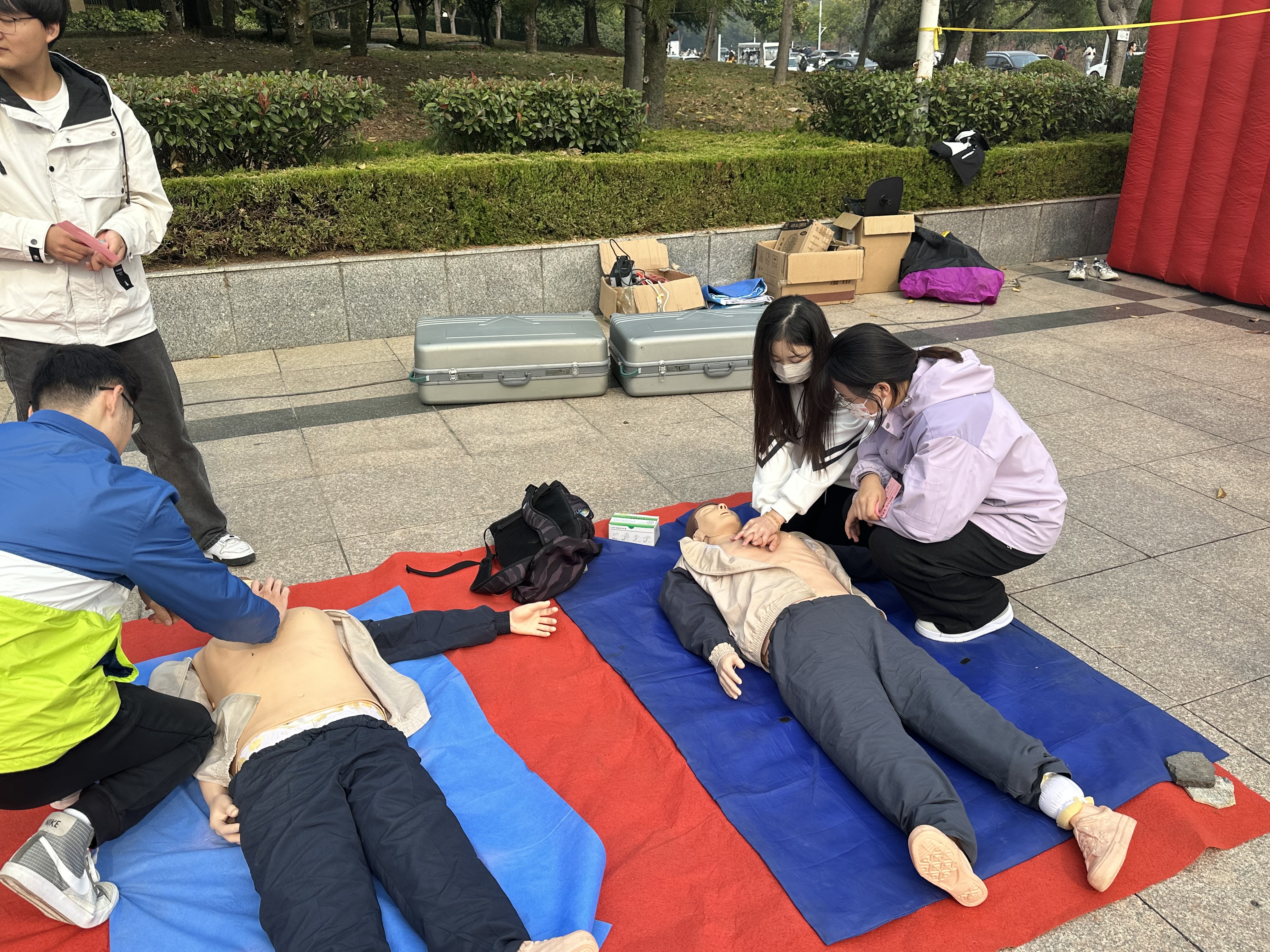 本次“119”消防安全月活动现场设置有火灾“逃生屋”体验、心肺复苏技能学习、消防器材展示与体验、消防水带“保龄球”、消防标识识别、灭火演练六个寓教于乐的体验项目,在“打卡”完成上述项目后,可以通过“套圈夺宝”环节赢得“新国标”电插排、印有消防知识的玩偶、灭火器水杯、钥匙扣等消防文创用品。每一个展示区都有专业的消防员给师生讲解消防器材的使用方法。在实践方面,师生可以进入“逃生屋”,模拟感受火灾发生时的紧张氛围,学习逃生方法,还能亲自动手实施心肺复苏和急救操作。针对理论知识方面,现场设有消防标识挑战赛和消防创意海报作品展览区,让大家学习消防常识。同时,师生还可以亲身体验消火栓连接、穿戴消防战斗服、背空气呼吸器、打消防绳结等,增强对消防装备的了解。