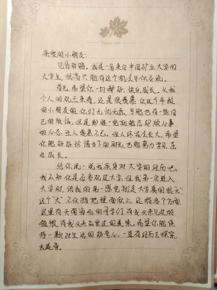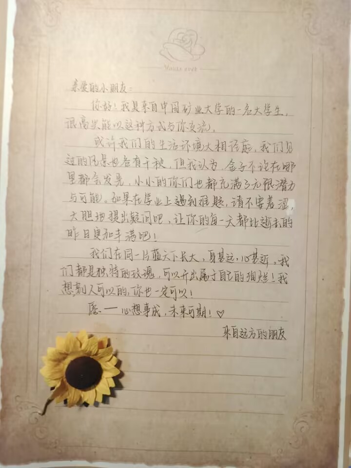 通过此次书信传情活动,乡村的孩子们感受到了社会的关爱与支持,更能认真学习,为改变命运,追求梦想而努力奋斗。