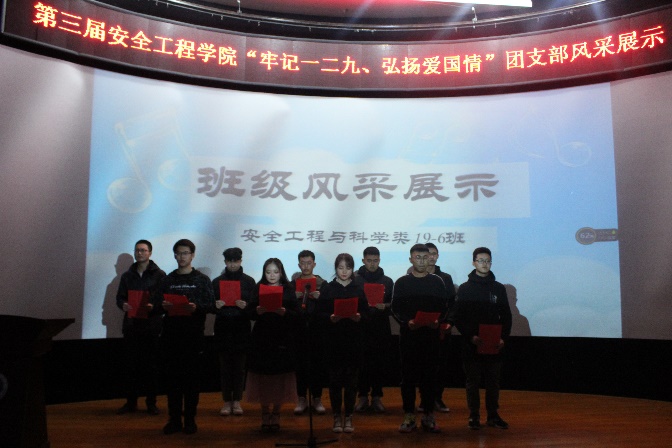 随后于基伯老师对本次活动及近期同学们的学习成绩问题进行了总结,指出国家的不断繁荣发展需要一代又一代人的共同努力,作为大学生,要将对个人理想的追求融入实现中华民族的伟大复兴中,并相信同学们在以后的学习中能够总结经验,吸取教训,在接下来考试中取得理想成绩。最后主持人揭晓评比结果:安全19-3班获得一等奖;安全19-2班、安全19-5班获得二等奖;安全19-1班、安全19-4班、安全19-6班获得三等奖,本次活动在掌声和欢乐声中正式结束。