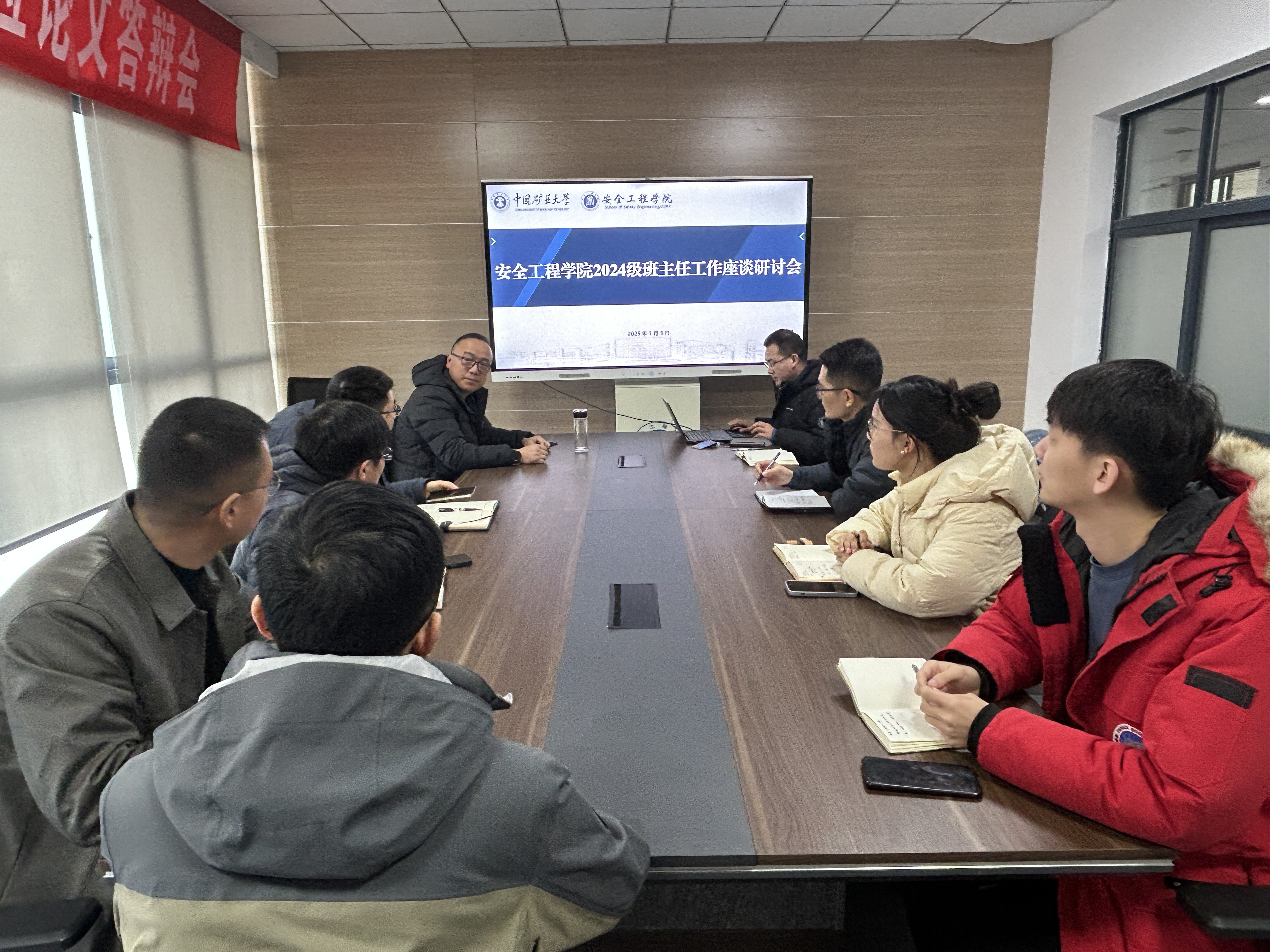 为深化班主任队伍的建设力度,贯彻落实三全育人理念,凝聚更强育人合力,1月3日上午,污污漫画于矿科A317召开2024级班主任工作座谈研讨会。污污漫画党委副书记邵波、2024级辅导员胥振、范梦阳以及各班行政班主任参加会议。本次会议由院党委副书记邵波主持。