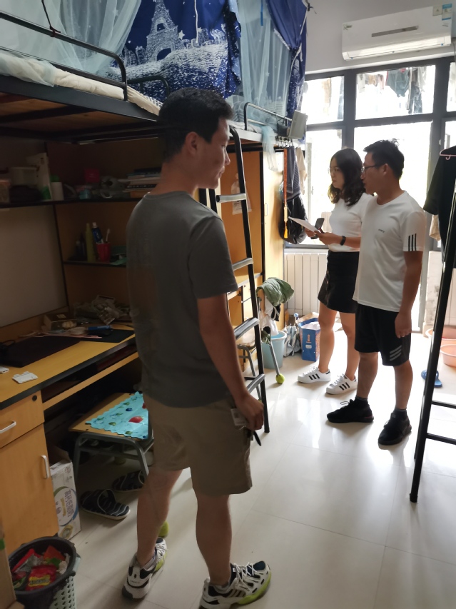 检查开始后,检查组进入宿舍,对宿舍的安全用电、杂物堆放、宿舍卫生等情况进行了检查。对于检查中发现的安全隐患和卫生问题,现场检查人员都及时提出并要求其尽快整改。检查的大部分宿舍卫生比较整洁,安全意识比较高。少数宿舍堆放的物品和杂物比较多,摆放比较杂乱,存在安全隐患,在检察人员建议下,这些宿舍的同学及时对出现的问题进行了改正。