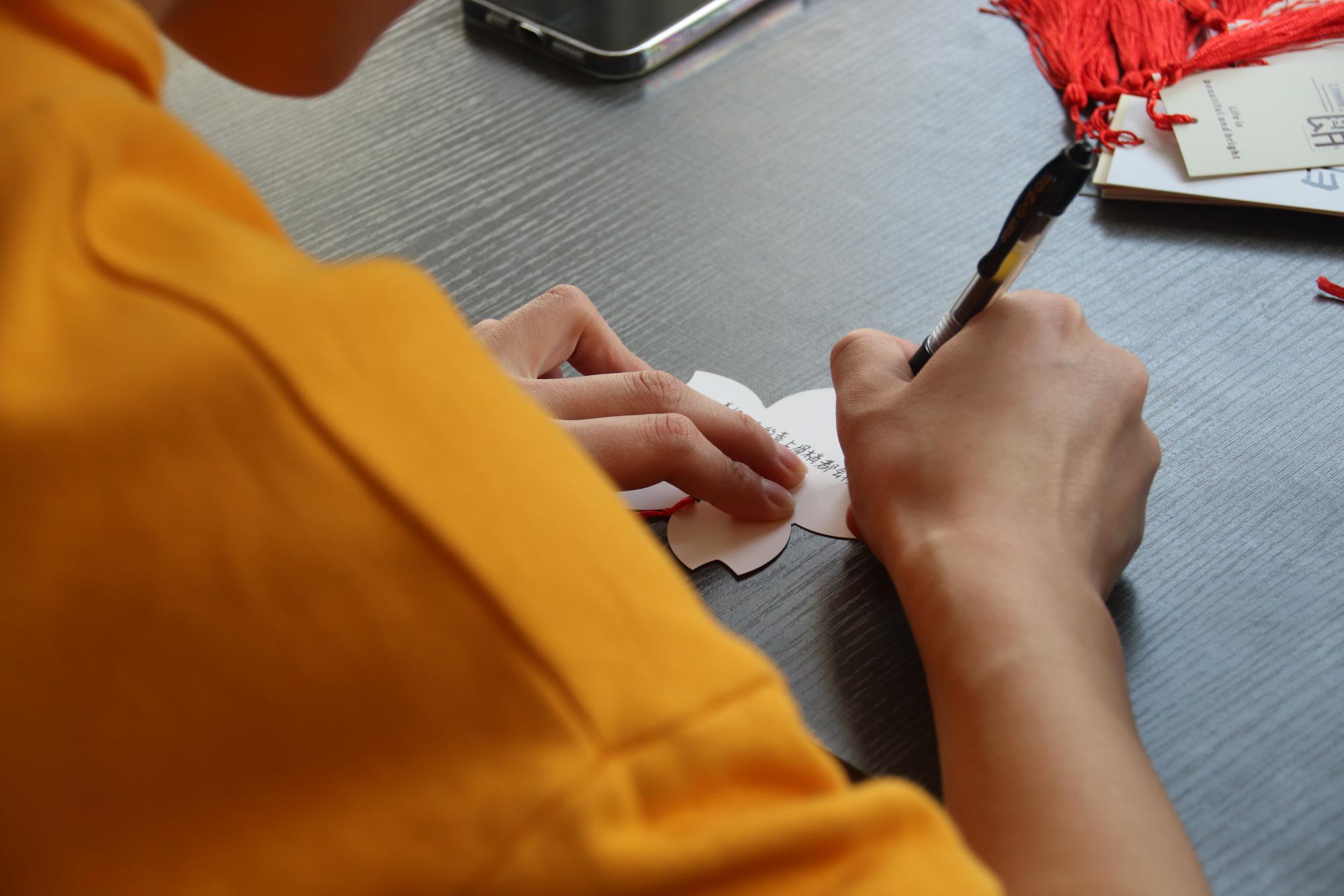 本次女生节系列活动得到了污污漫画学生积极响应,同学们于梅三庭院和书吧登记信息后,扫码进入活动群,挑选一张自己喜爱的卡片,亲笔写下对女生真挚的祝福语句,并跟随志愿者一同将明信片挂满已泛春意的枝头,以此为女生们献上真挚的节日祝愿。树梢上的一张张卡片在阳光下格外温馨耀眼,这为男生女生提供一个相互交流的平台,更让每一个女生在这个属于自己的节日里拥有一个美好的回忆。除了制作精美卡片外,同学们于行健书院力行轩进行折纸活动,他们各自交流经验,观看学习视频,制作出各色各样、种类繁多精美的折纸礼物。大家将心中的祝福化作美好的语句和一朵朵美丽的纸花,表达了对女性最美好、最衷心的祝愿。