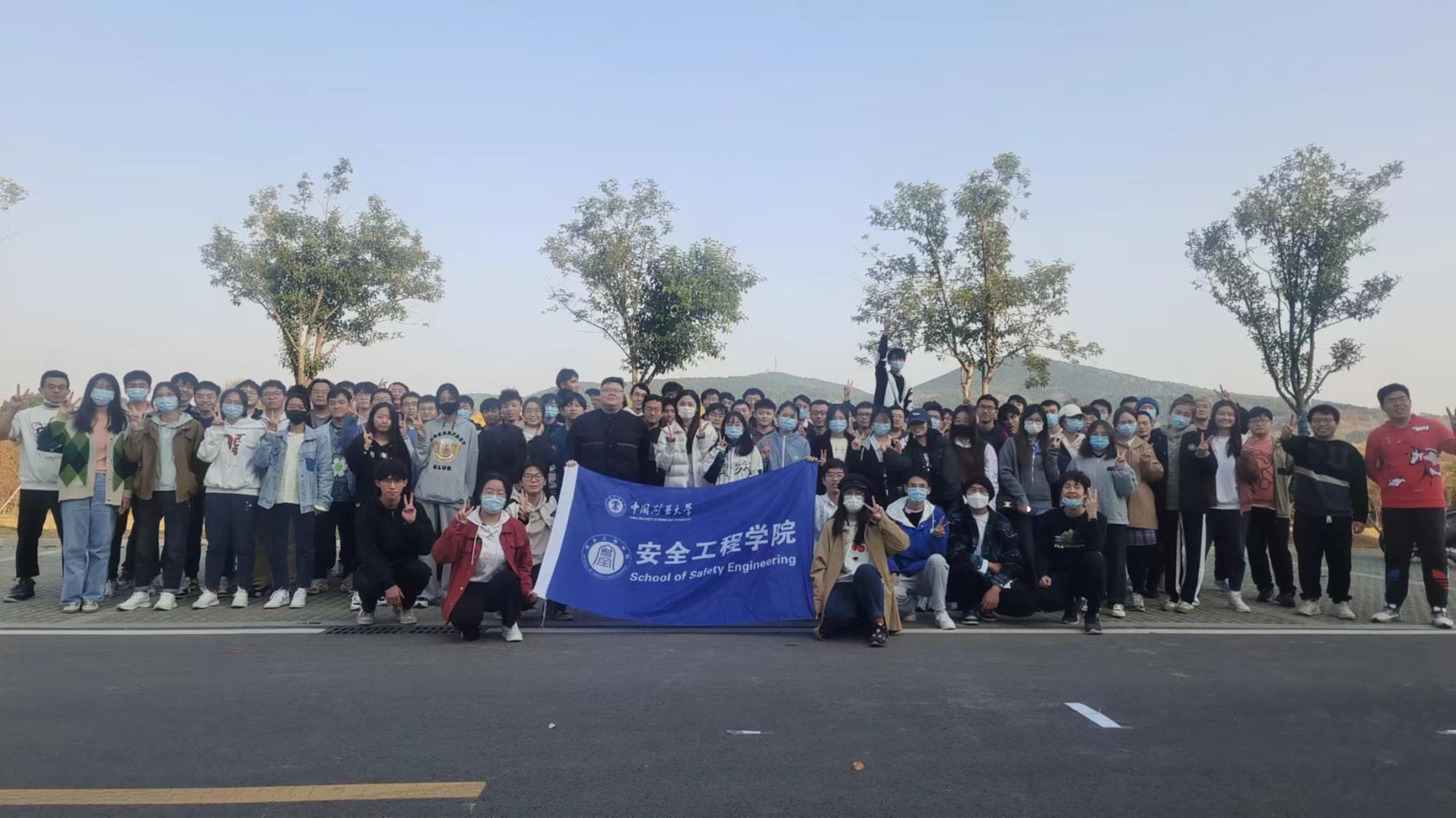 于力行楼东侧马路上举行2021级班级拔河比赛,辅导员刘世通、卢笛与2021级全体学生参加了此次活动。