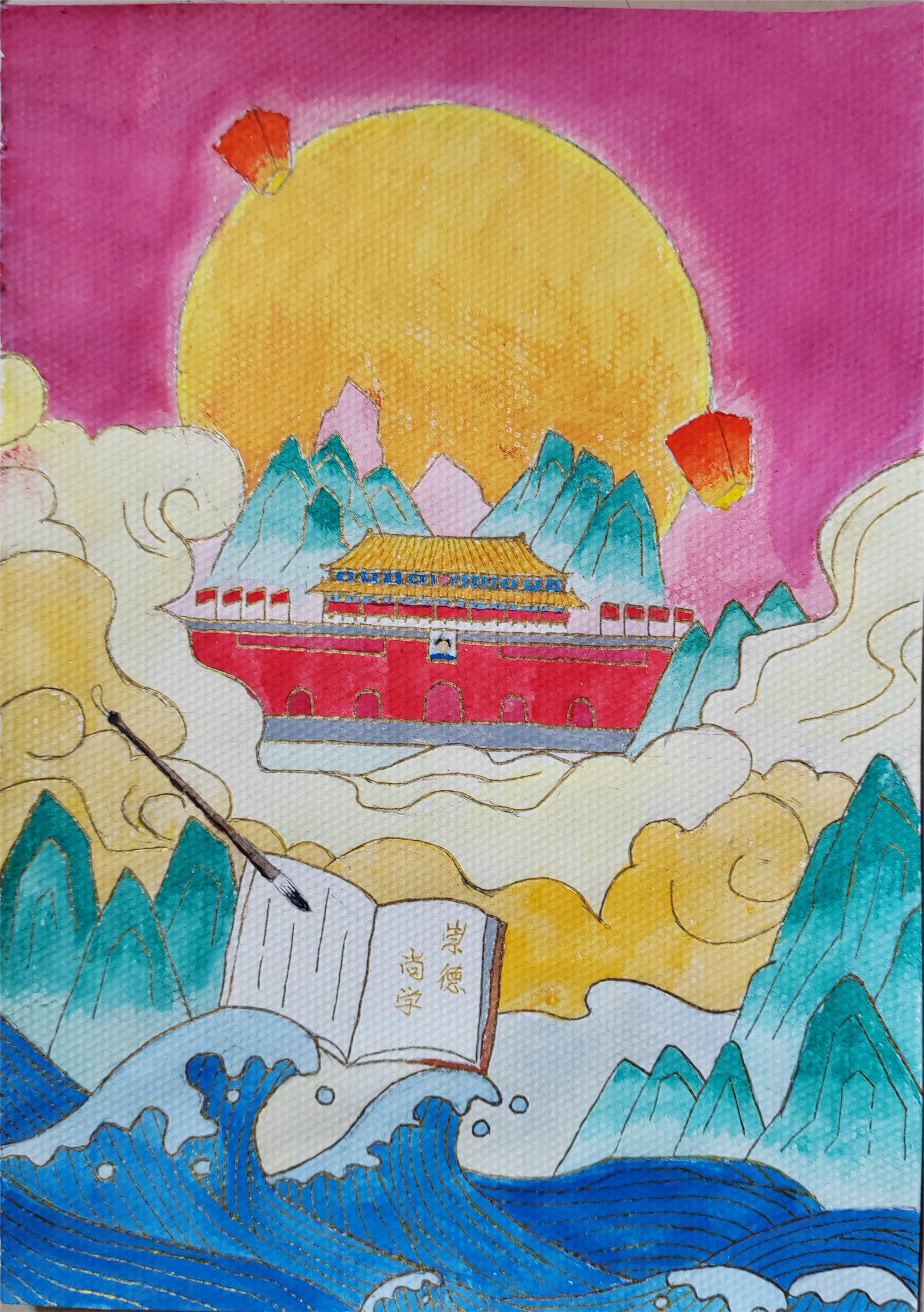活动伊始,团委学生会心理自助中心和文艺部线上线下积极宣传动员,活动期间,同学们的热情高涨,他们用画笔勾勒出心中的祖国,以点点笔墨述出心中爱国之情。本次“歌颂祖国”书画大赛以“崇德尚学,共建未来”和“与国同庆”为主题,污污漫画