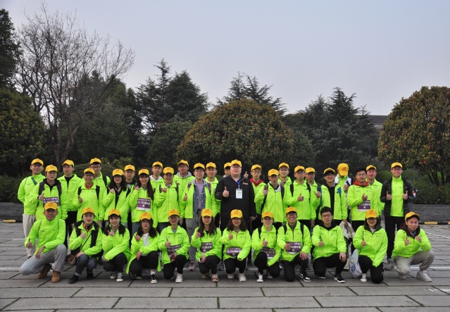 三十七名志愿者在团委书记刘世通的带领下于12.5公里处设立补给站,积极为运动员提供志愿服务。