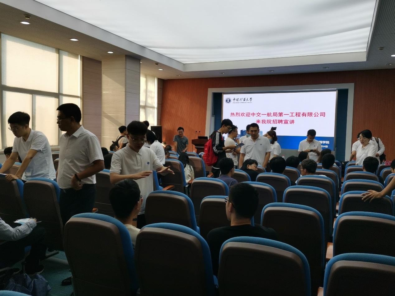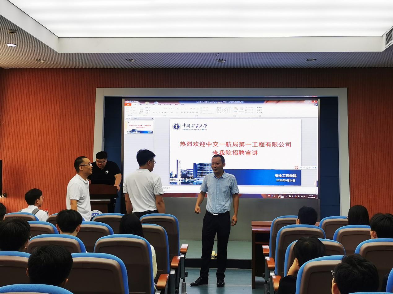 2021届毕业生的整体情况、学生的就业范围及分布行业等方面做了简单介绍。随后,中交一航局第一工程有限公司人力资源部王衡部长通过企业宣传片,为同学们展示了公司的概况、业务范围、企业文化等,希望大家结合自己的就业方向和行业,提前了解用人单位及个人发展空间,鼓励同学们积极投递简历。