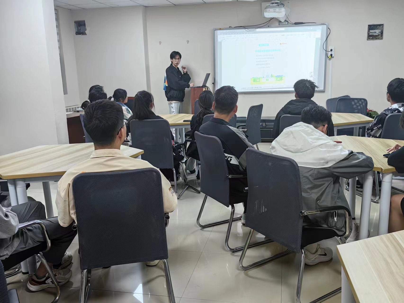 朋辈导师21-5班俞嘉濠受邀主讲,2023级6班全体同学参加活动。