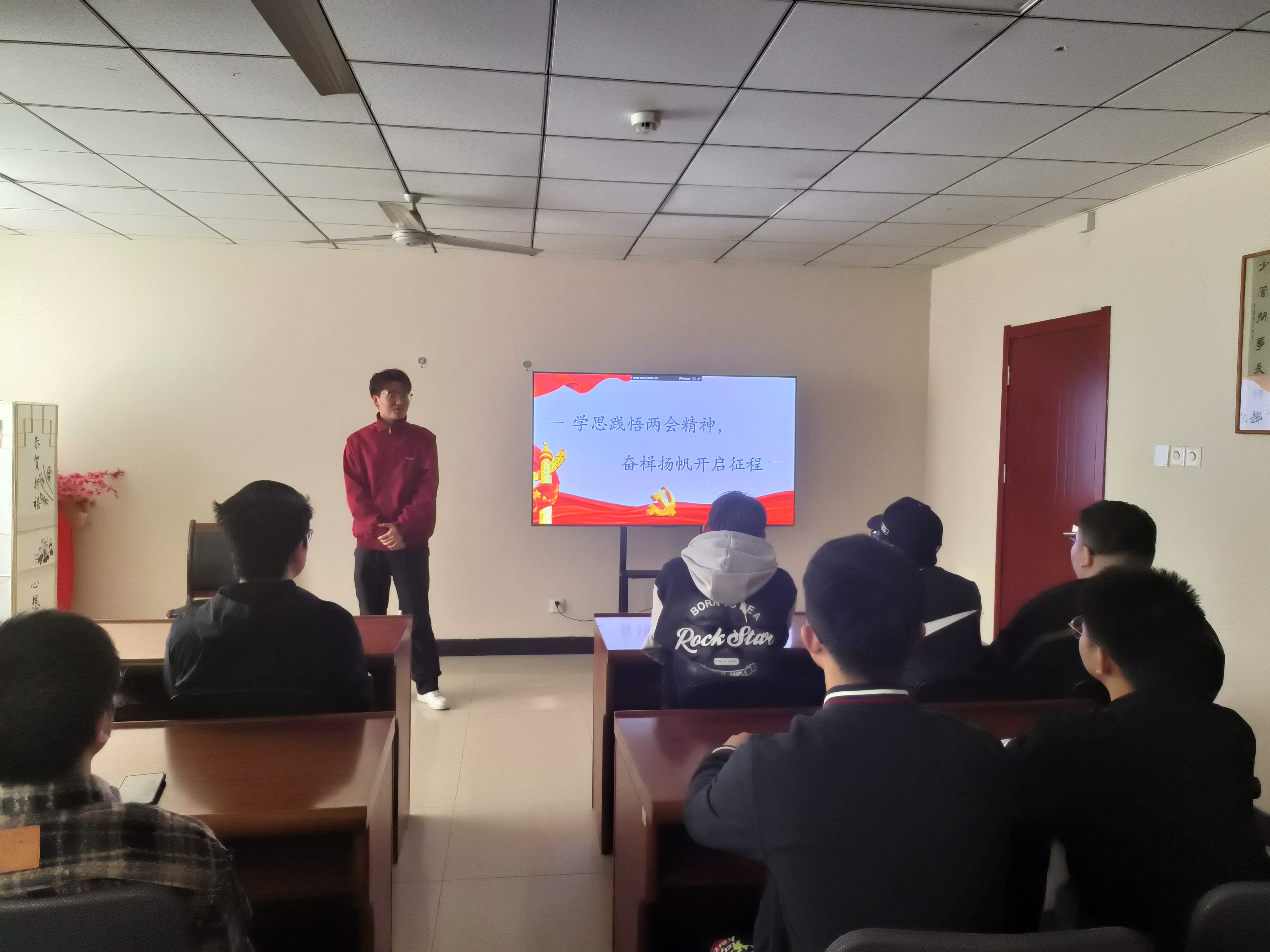 活动伊始,冀志环结合主体课程、就业选择等方面对不同专业展开介绍,接着冀志环从自身情况出发,向同学们介绍个人学习方法和学习经验,分享了从大一到目前的成长与进步的经验,助力班级同学的学习和发展,激励同学们从当下开始,行稳致远,铸就辉煌。姜丽源以“尽力而为,尽兴而归”为主题,针对本科学习提出四个关键词,并从自我反思、学习方法等方面展开分享。她通过剖析自己大一学年成绩不理想的原因,以及大二学年奋起直追不断逆袭的案例来鼓励成绩目前不够理想的同学们不要轻言放弃,把握课堂,不断突破自己。姜丽源鼓励同学们应该不断地自我剖析,自我总结,不断明晰自身的优缺点,才能更好地确定未来的生涯发展方向;最后,王彬皓围绕两会展开讲述。他向同学们说明大学生为什么要关注两会,以及两会和我们大学生之间的关系,使同学们对两会的精神和意义进行了更加深入的了解和感悟,带动同学们参与到两会精神的学习、讨论和实践中去。