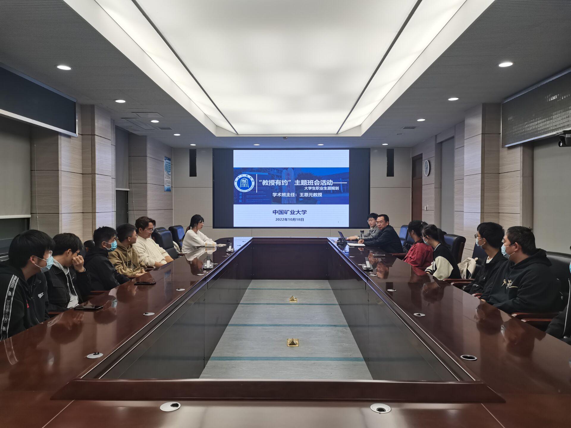 在矿业科学中心A412举行了教授有约活动。王恩元院长受邀为同学们主讲大学生涯规划,21级2班行政班主任刘玉冰老师及全体同学参加本次教授有约活动。