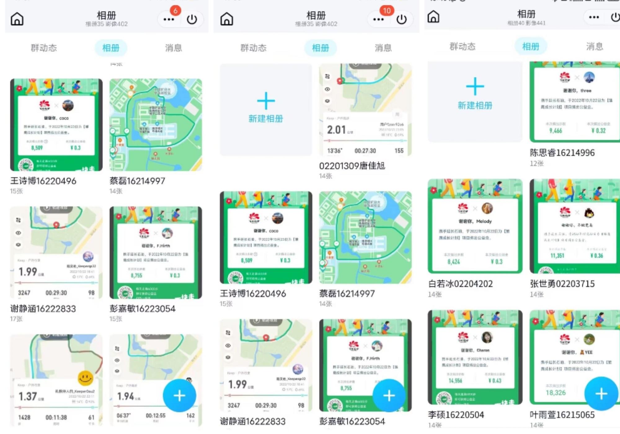 本次活动使用Keep进行走图打卡,要求参与学生连续七天在矿大南湖校区相应地点一次跑(走)出爱心、二、十、大、CU、MT、爱心等七个字样。在运动完成后,同学们对运动路线进行截图处理,并将截图发至相应的活动群相册。活动过程中,或一人独行,在独处的清欢中尽享矿大秋日的晚风;或三五结群,在好友的陪伴下追寻萧萧秋景的旖旎;或相约期遇,在百年的学府内共绘活动的轨迹。在漫步校园的随性览游中,姿彩迥异、角度纷纷的矿园秋景展露无遗,进击充实、赏心明朗的大学生活峥嵘难忘。