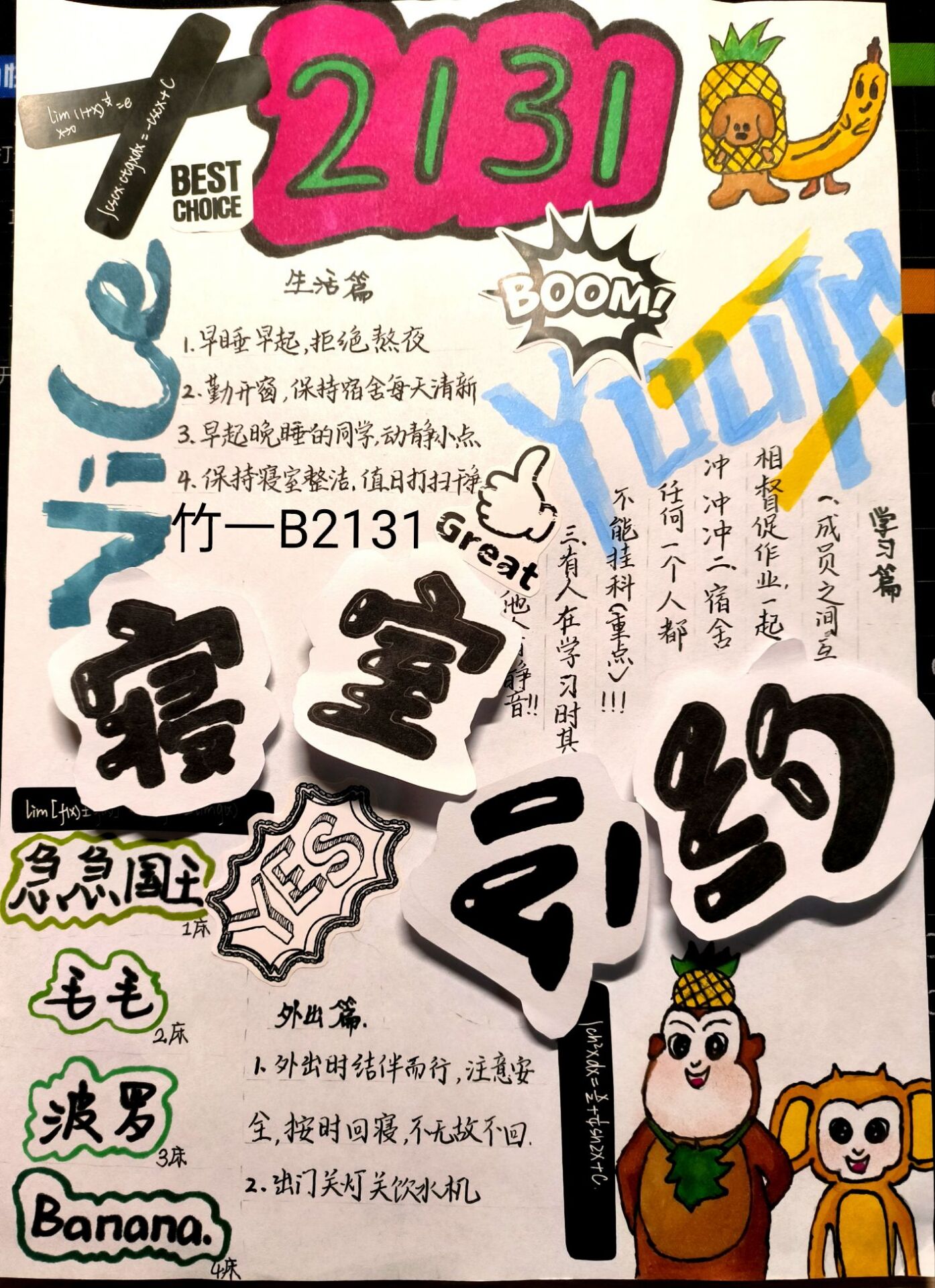 通过宿舍公约设计大赛这个平台,鼓励宿舍成员彼此沟通协商,互相了解,增强了寝室的凝聚力,更促进了宿舍良好风气的养成。