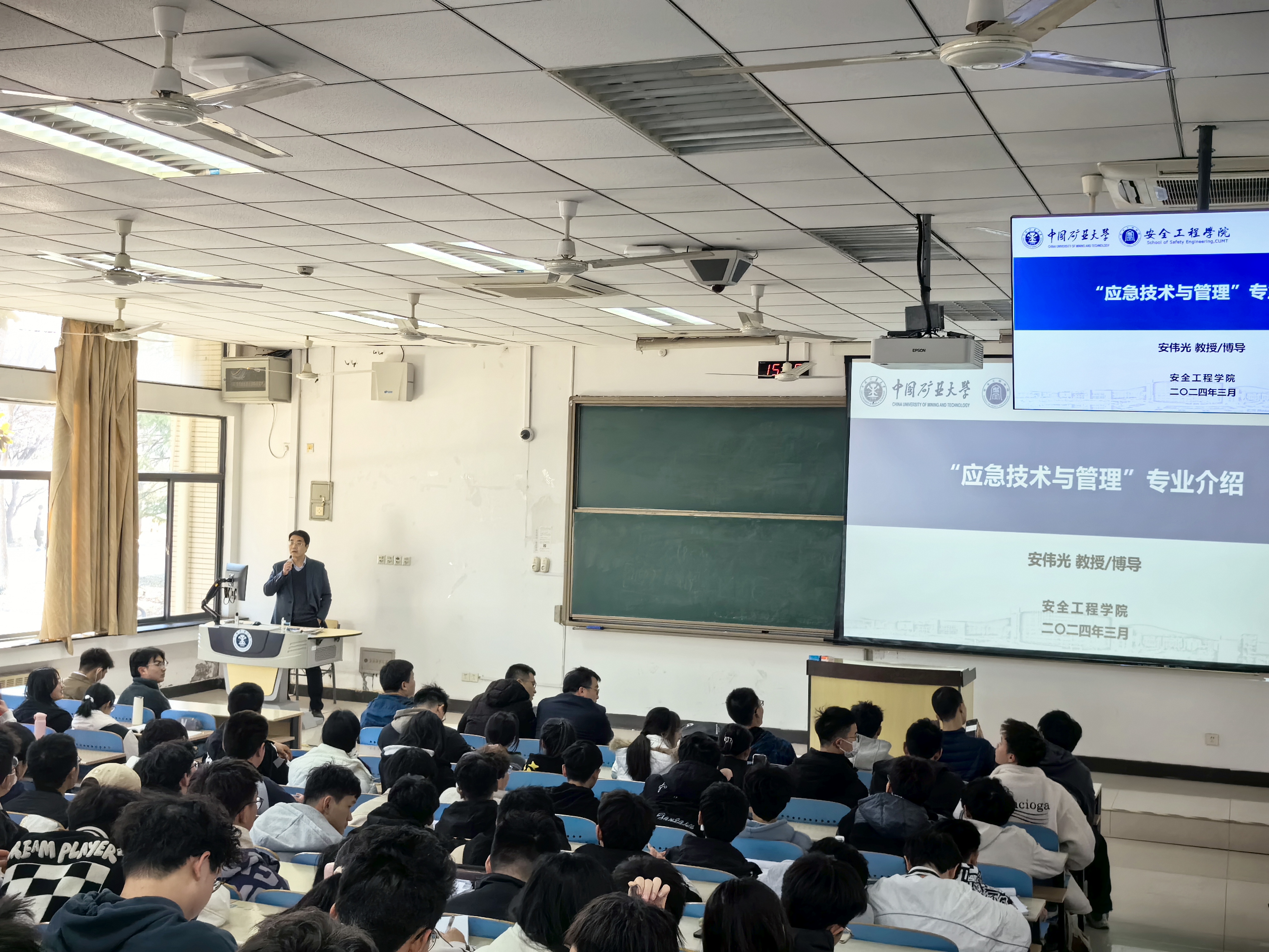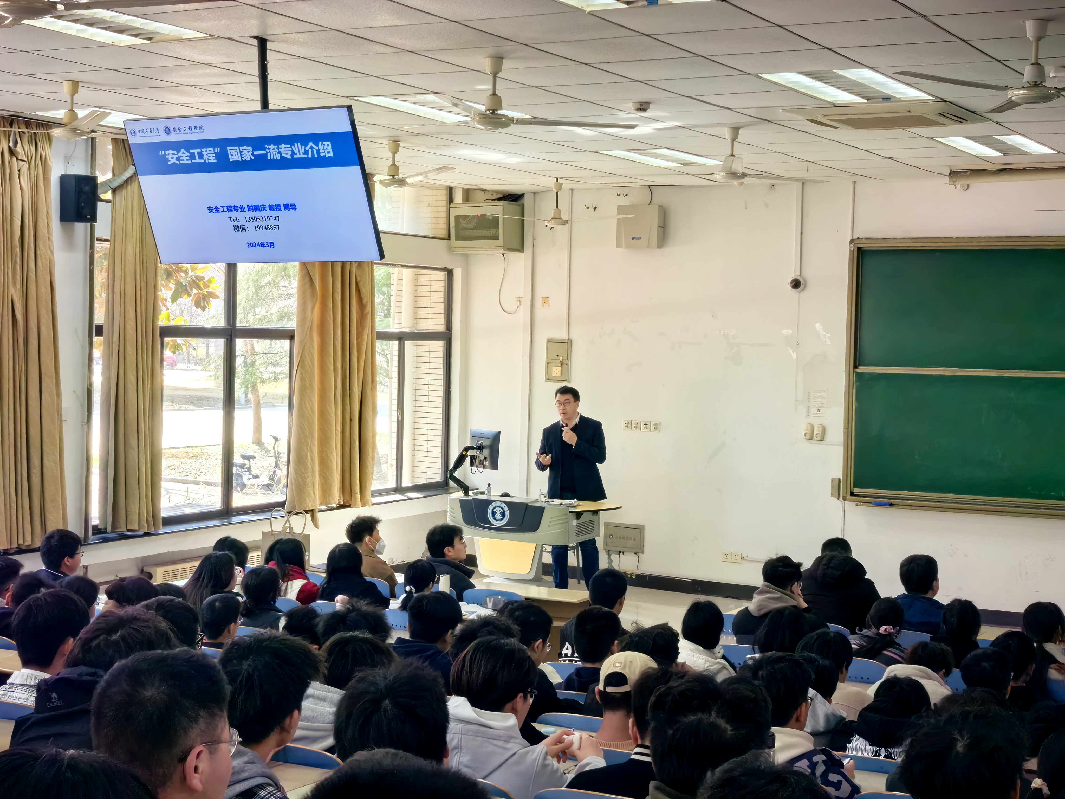 于博1-C103召开2023级专业分流动员大会。安全工程专业教学中心主任时国庆教授、消防工程教学研究中心副主任刘洪永副教授、职业卫生工程专业杨永良教授、江苏省城市火灾防控高校重点实验室主任安伟光教授受邀担任本次活动主讲人,2023级辅导员郭佳老师主持此次动员大会,2023级全体学生参与本次活动。