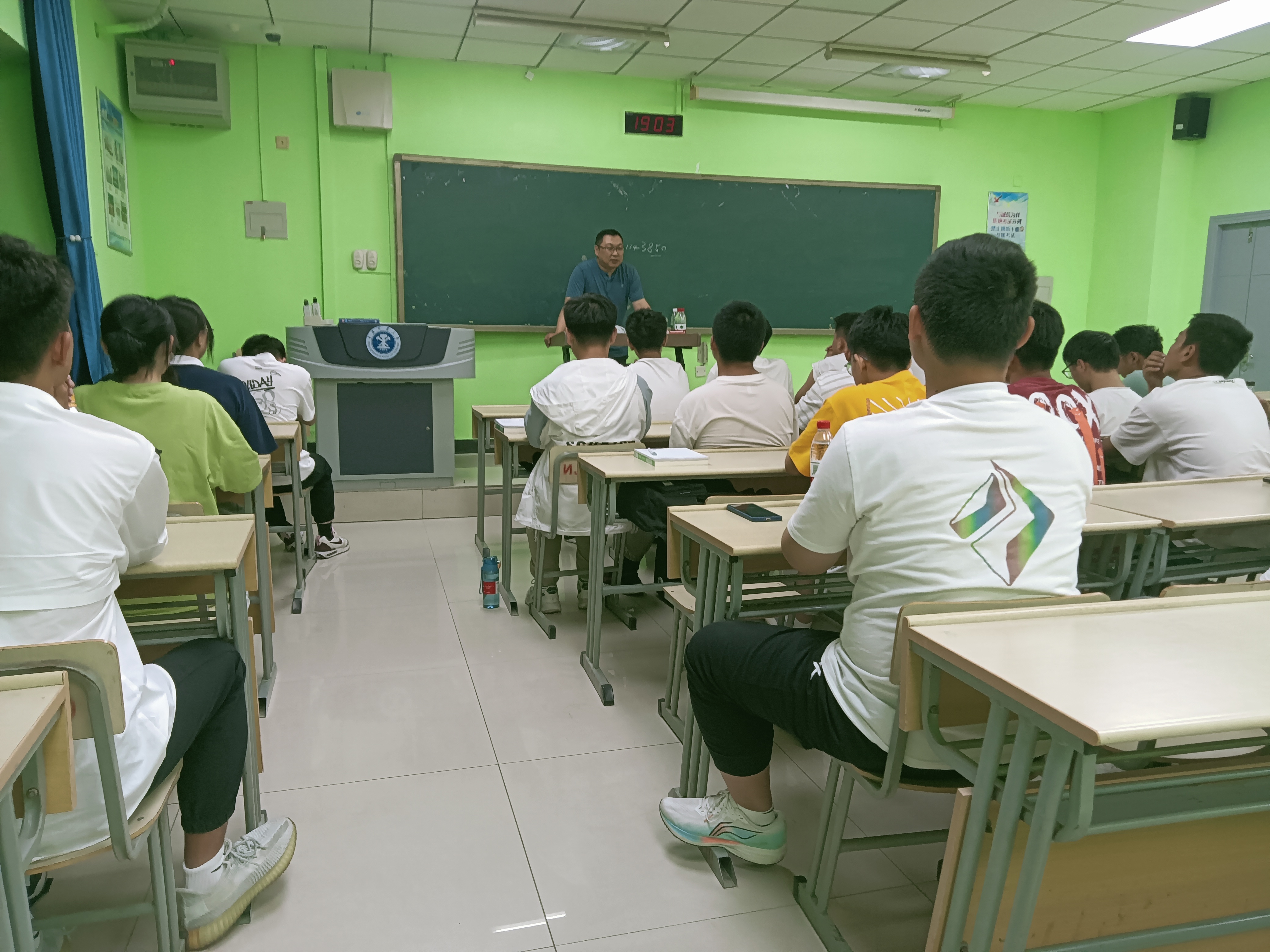 王雁鸣老师以“新生活 新起点”为题,首先他向现场同学们详细介绍了何为安全工程专业,以及安全工程的发展方向和就业前景,接着,王老师将相关的科研项目通过列数据形式向同学们直观的解释科研的内涵和现状,为了激发大家的积极性,他还现场分享了个人的求学经历以及指导过的大学生创新创业训练计划项目,不仅增加了同学们对科创工作的理解,也调动了同学们对创新创业的向往。随后,他强调,大一新生要尽早确立明确目标,并对同学们四年的大学生活进行指导。冯小军老师总结道,新生活新起点,每位同学都要把握机会不负韶华,并对班级建设提出了指导性意见。两位老师还采用师生问答的形式为同学们入校后在生活、学习上的相关问题答疑解惑。活动结束后,全体师生合影留念。