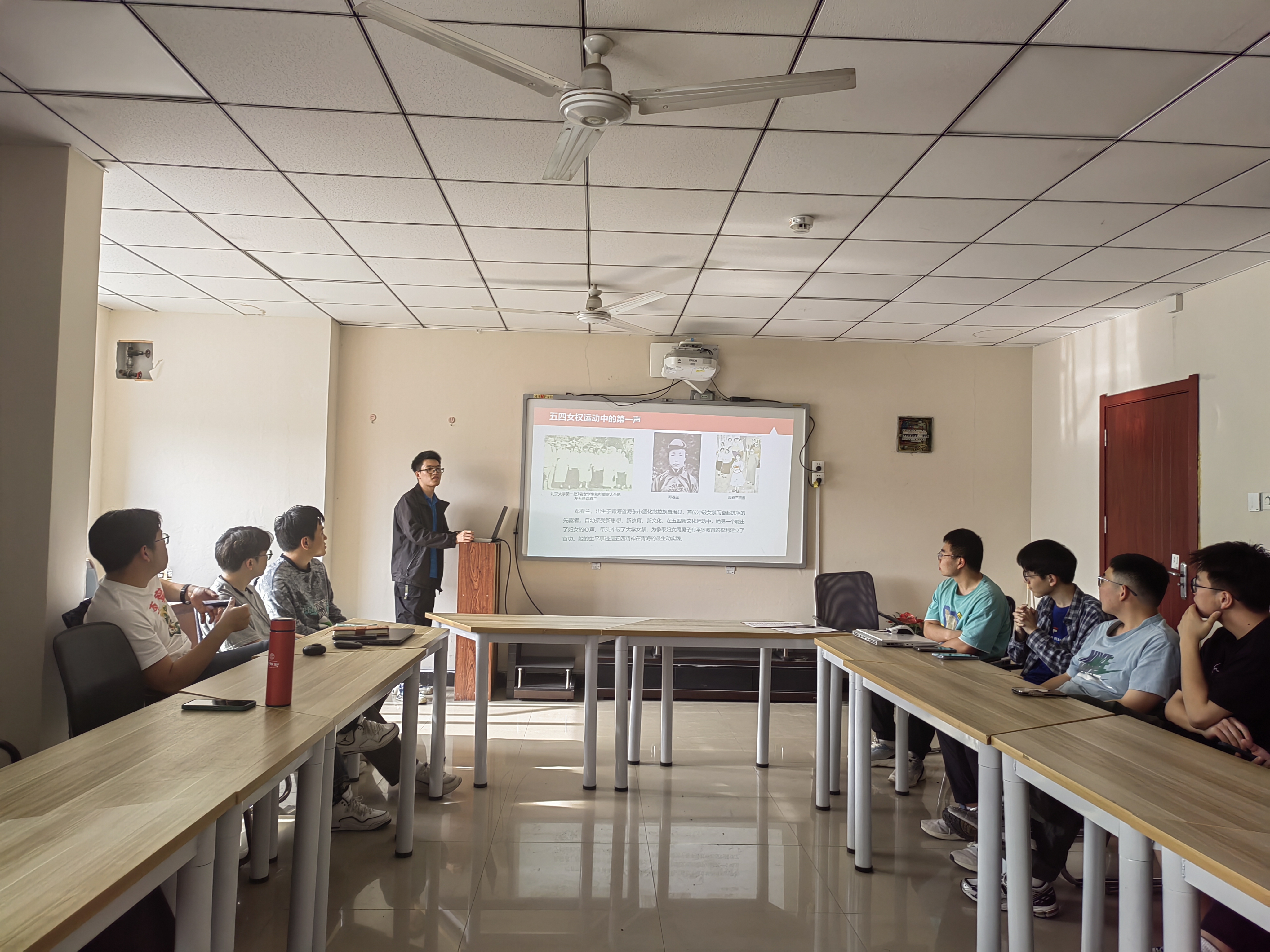 活动伊始,柯雨辰同学以北大红楼为引,从“回望过去”、“立足当下”和“寄语未来”三个方面展开论述,他鼓励同学们要有担当、不畏困难、努力拼搏。接着,黄旭兴同学讲述了我国青年在科学、体育等方面做出的卓越贡献,活动最后,董浩然同学总结了两位同学的发言并分享了自己的感悟与分享,张宇琦同学和冀志环同学分享了今年所做的工作及感悟。