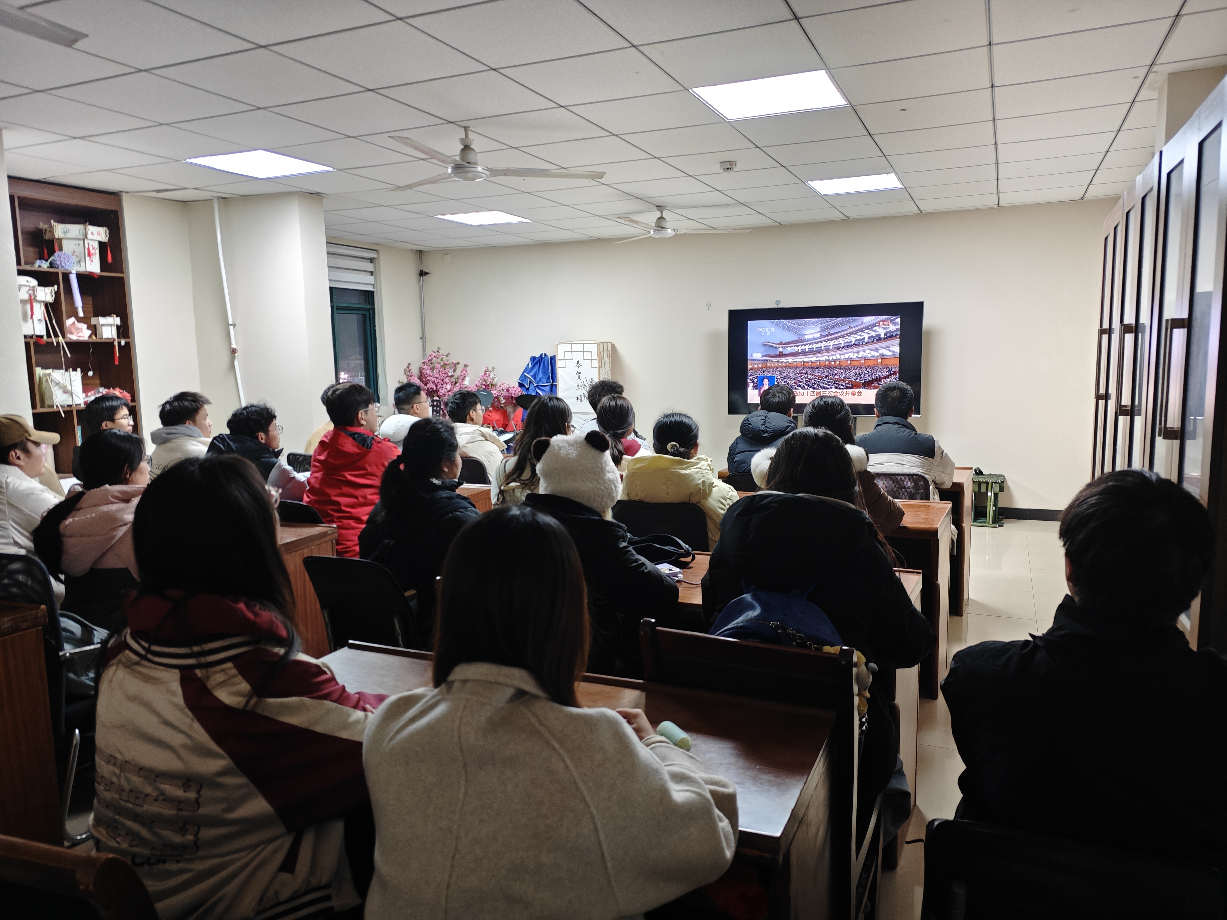 为引导广大青年学子紧跟国家发展脉搏,强化使命担当,不断凝聚奋进力量,污污漫画于3月5日在行健书院组织学生集中观看全国两会开幕式,并围绕两会内容与精神开展专题学习交流活动。