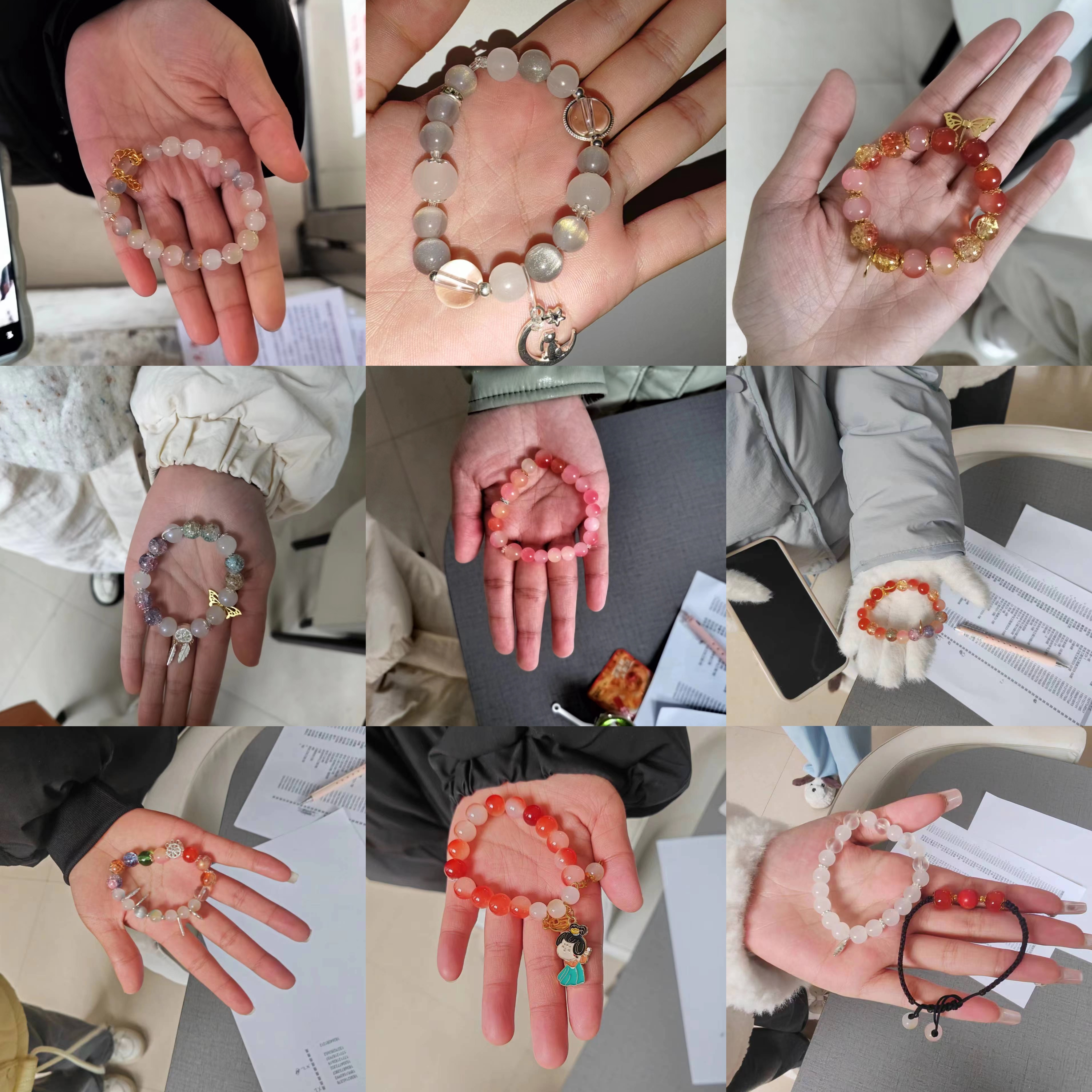 活动前期,主办部门提前将串珠手链材料包分类准备好,于梅三一楼发放。活动参与者在工作人员指引下登记好信息,领取材料。活动期间,同学们在主办方提供的串珠教程的帮助下,结合自身独特的想法,开始制作串珠手链。同学们精心搭配不同颜色和材质的彩珠与编织绳相配合,在保证美学平衡的基础上,尽情地发挥想象,贡献出许多精美的创新作品。活动结束后,参与者们带着作品前往梅三一楼进行成果验收,在主办方对作品进行留影之后,参与者们可以留下自己的成果。