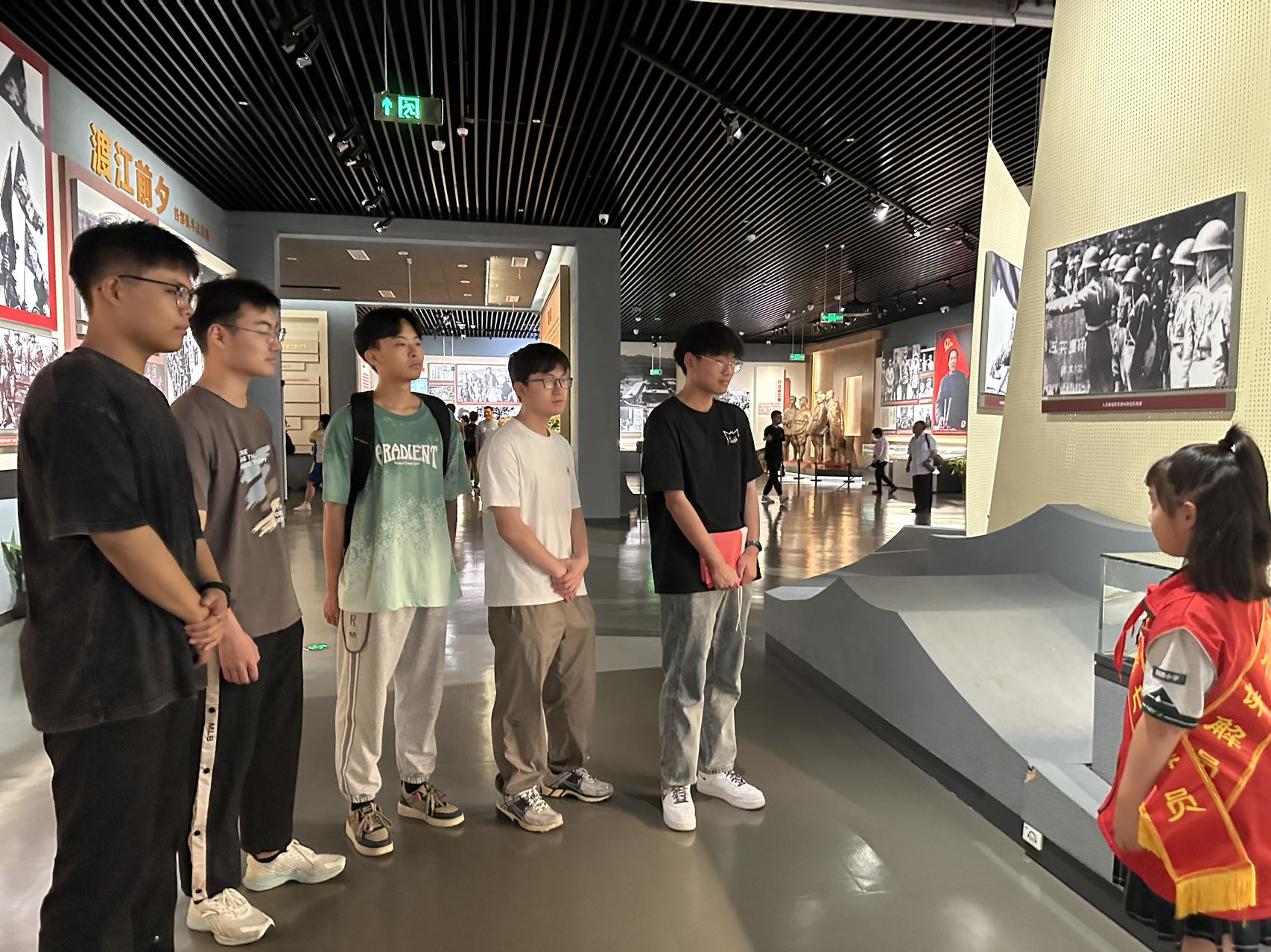 活动的第二天与第三天,实践团前后前往了南京渡江胜利纪念馆与合肥渡江战役纪念馆。南京渡江胜利纪念馆的红色木船外形主展馆上,邓小平亲笔题写的“渡江胜利纪念馆”馆名夺目,将那场战役中百万雄师过大江的雄风与豪情尽显其中。进入馆内,实践团跟随着“红领巾”讲解员,一起参观并学习渡江历史,从渡江前夕的厉兵秣马,到战争中千里横渡,最后到战争结束后的城市解放,渡江战役的每一个过程都是惊心动魄,展现出解放军的英勇豪迈和人民支前的伟大壮举。在讲解员的带领下,实践团成员参观了解战役中使用的“京电号”小火轮、陶迅烈士的家书、著名作曲家胡士平的日记本等珍贵的历史文物。从中,实践团成员再次为坚定信念、革命到底、无所畏惧、不怕牺牲、勇往直前、连续奋战的渡江精神而自豪。