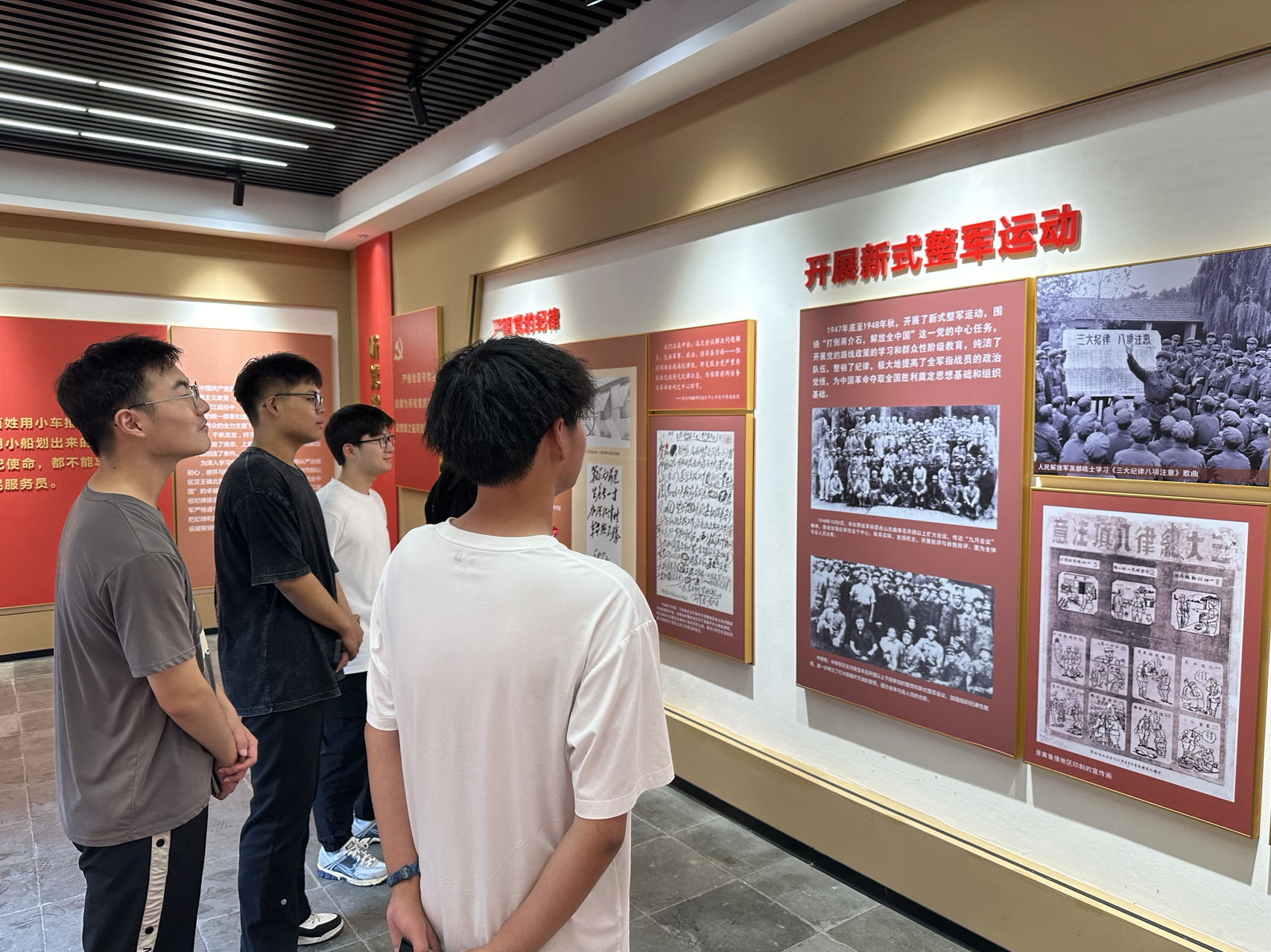 活动首日,实践团成员第一次走进民风淳朴的北望村,在村民的指引下来到了位于村落中心的渡江战役总前委旧址。这座古朴的院落始建于清朝末期,曾为当地富户郝姓人家的宅邸,至今仍保存完好。在工作人员的带领下,实践团成员先后参观了总前委指挥部,谭震林和刘伯承等指挥员的办公室以及旧址内陈列的各类革命文物,如邓小平用过的煤油灯、陈毅用过的代号“501”的专用电话机、谭震林穿过的布棉线编织草鞋等。通过旧址和这些代表革命先烈生活起居的文物,实践团的成员们深刻体会到了解放战争时期解放军战士们生活条件的艰苦和他们饱含的革命热情和坚定理想信念。