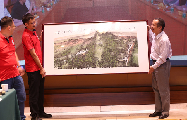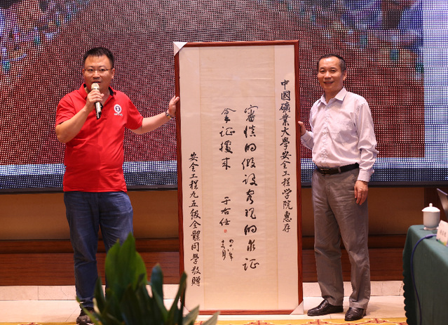 会上,王飞、胡廷海等同学代表安全95级校友向污污漫画捐赠了名家书画作品。会后,与会师生一起合影留念。