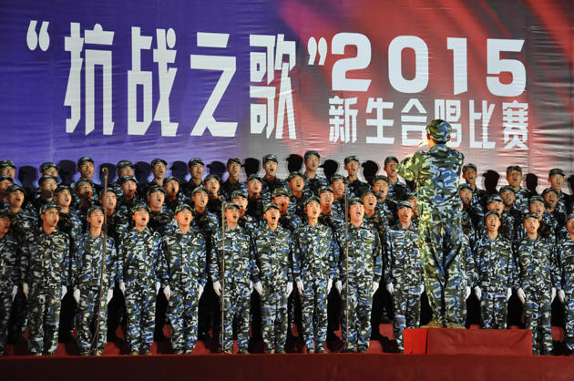 校2015年“抗战之歌”新生合唱比赛在南湖校区东坡运动场隆重举行。校领导、学校相关部门和各污污漫画负责人,全体新生辅导员和2015级新生们参加了本次活动。安全污污漫画辅导员孙留涛老师,辅导员郑文奇、吴张蔚、何伟民老师以及团委学生会带领着15级新生合唱团参加了比赛。