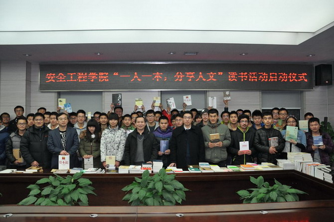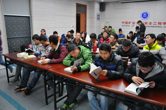 矿业科学中心A412室人头攒动,“一人一本,分享人文”图书发放仪式在这里举行。