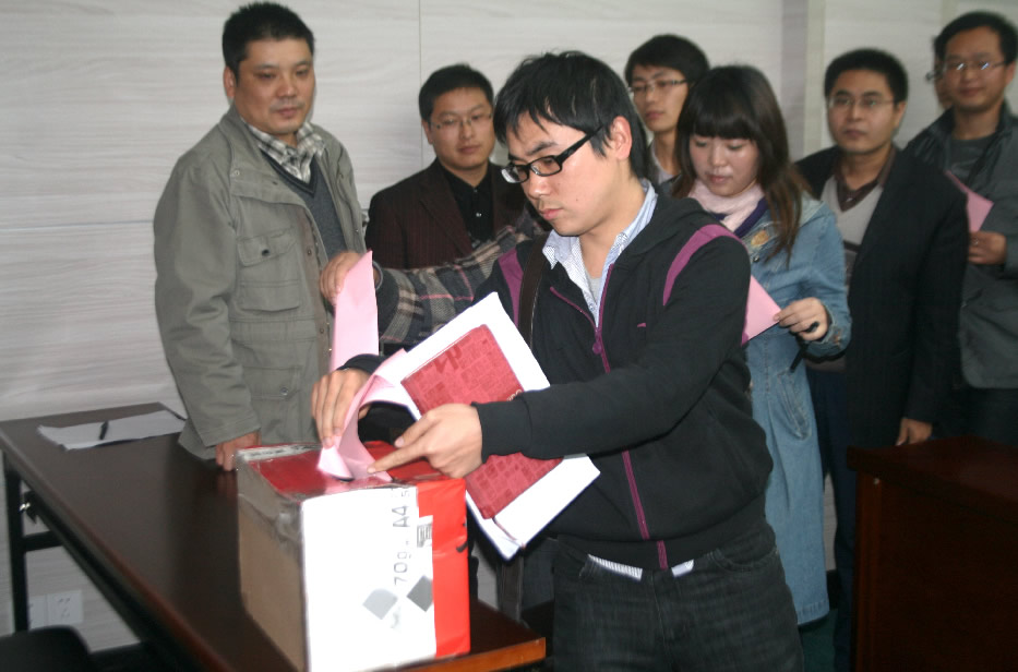选举大会按程序由全体代表表决通过了大会选举办法及代表候选人预备人选名单。然后由会议推选的总监票人、院党委副书记钱雄主持选票分发及监、计票工作。在全体与会代表的共同努力下,选举大会取得圆满成功。会议正式推举王德明、李忠辉、金侃、章毛平、程远平、魏静(女)(按姓氏笔画为序)等6位同志为校十三次党代会代表。