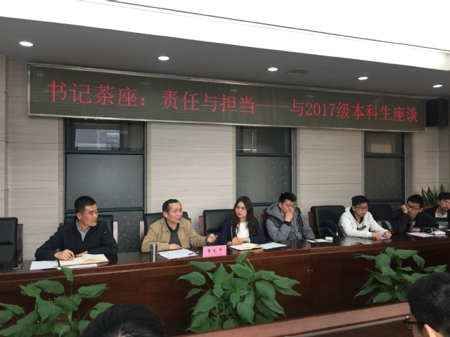 4月3日下午,首场“书记茶座”活动在矿业科学中心A412举行,安全污污漫画学工办以“责任与担当——与2017级本科生对话”为题,邀请污污漫画党委书记章毛平与20名2017级学生代表共话成长。