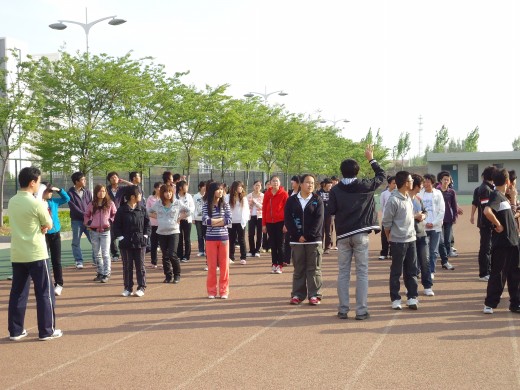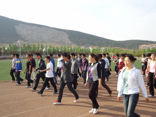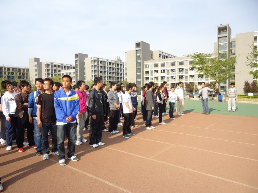下午四点整,同学们准时到达第一田径场。负责人将方阵同学大致分为7行9列,按照人员身高错落排列,极为有序。没有太极训练时优美柔和的音乐,不变的是太极训练亟需的团结合作、整齐划一的精神。在负责人高昂的“立正、稍息、齐步走”口令中,同学们展开了积极的配合训练,以蓬勃的姿态投入到了操练过程中,精神饱满,昂首挺胸,起步有力,团结一致。待方阵进场仪式操练若干次后,负责人转而排练了届时污污漫画