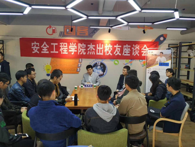 邀请陈五友、孟祥松、张永山、沈雁冰、魏高科等五位优秀校友返校举办校友论坛,围绕安全行业形势与就业状况、创新创业素养与能力培养、大学生涯规划设计与指导等内容为在校学生交流指导。