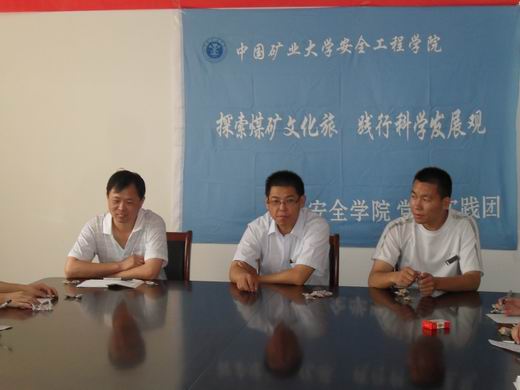 之后,党员实践团的各位同学们纷纷发言,并向在座的陈尚书记和肖长华老师积极提问,双方就如何运用科学发展观指导安全生产等问题展开讨论。实践团队长刘建安同学说,“通过在座各位前辈的经验介绍,我们学习了矿上是如何把党的科学理论与生产实际结合起来,更加深入的了解了科学发展的内涵。在今后的学习和工作中,我们将尝试运用科学发展观分析解决出现的各种情况和问题,让科学发展的观念真正走入生活!”