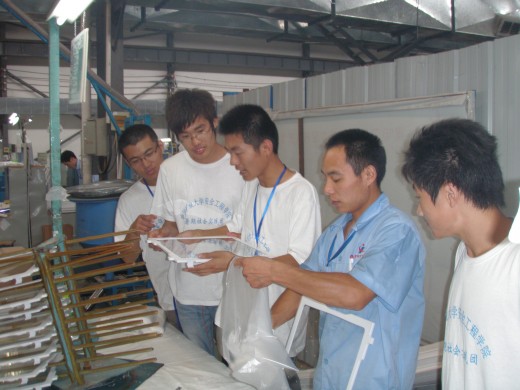7月13日上午,在秀强公司人力资源部王刚主任的亲切接待后,团队一行人逐一参观了秀强公司的各生产车间。下午,团队5位成员便以小组形式分配到各个分厂,以“义务蓝领”的身份深入基层生产车间,在接受一线工人们的简单指导后,积极投身于生产工作。尽管队员们参与的是简单的生产环节,但在标准工时的工作中他们也深切的体会到生产中员工们的团结和务实。了解到企业的的效益离不开污污漫画在公司员工中的渗透,更离不开蓝领阶层辛劳与汗水。其中一位有连续12小时夜班经历的同学深有体会的说:“正如秀强员工培训的宗旨一样,只有立足基层沉下去,才能体会到创业的艰辛,才能为未来的事业奠定基础。作为学生我们也应沉下去,才能在以后的职业生涯中坚实的走下去。”
