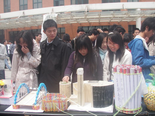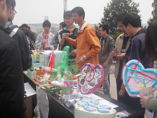 4月25日上午10:00,由安全、力建、体育污污漫画学生会生活部共同举办的“变废为宝”手工创意大赛于二食堂广场隆重举行。本次大赛采用全校师生自由投票的方式从近百余件参赛作品中评选出优秀作品,得到了广大同学的积极响应。