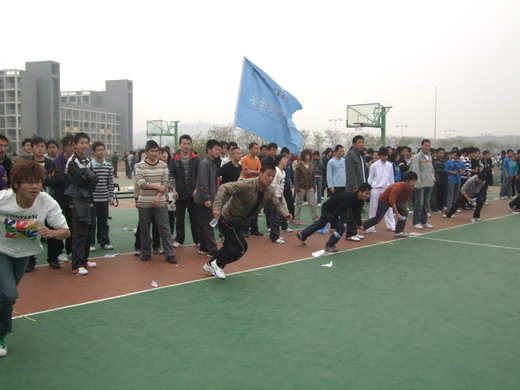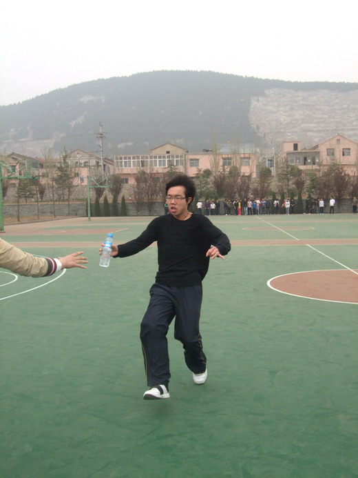 本次比赛各班出10名同学进行10*60跑步接力。选手以一瓶矿泉水为接力棒。比赛开始,当裁判发令,各队第一棒的队员们纷纷如离弦之箭,冲出起跑线。每一棒队员的发挥都至关重要,都会直接影响到比赛结果,而交接棒的处理更是重中之重。有些代表队虽然在头几棒跑得不错,一直领先,但在后半程比赛中因为丢棒而被其他队伍轻易追赶上。选手们忽然发现,手中不起眼的矿泉水竟才是整场比赛的关键,小小的一瓶矿泉水的作用不可轻视。