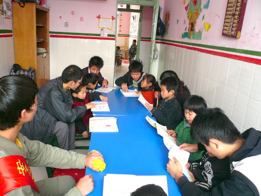 上午9点整,义务辅教的成员们到达目的地——徐州市启聪聋哑儿童语言康复中心。同学们先参观了孩子们动手制作的纸工艺品,随后前往教室进行辅教。