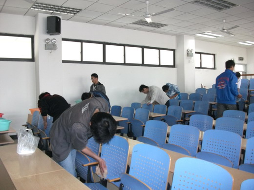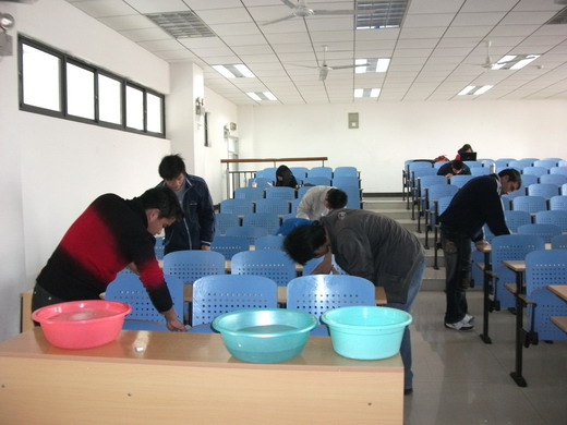 青年志愿者协会依照安排来到了分配的教室——教1A201、202、203,在院青协代表尹丽娜的带领下,清洗工作顺利展开,每个同学们都认真清洗有污迹的桌椅。虽然清洗过程有些辛苦,但看到清洗后干净后的桌椅同学们感到非常欣慰。在同学们的积极合作下,清洗工作很快就完成了。