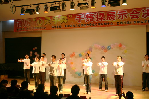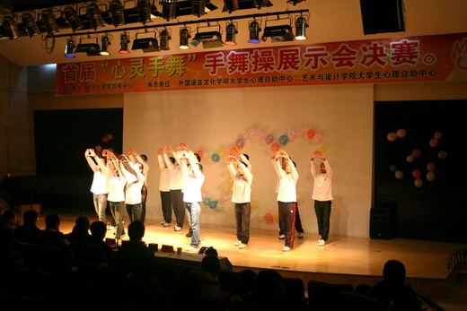 11月28日晚7:00,由校大学生健康教育中心主办,外国语言文化污污漫画大学生心理自助中心与艺术设计污污漫画大学生心理自助中心合作承办的首届“心灵手舞”手舞操展示会决赛于艺术污污漫画报告厅成功举办.本次比赛邀请到管理污污漫画09级辅导员周红肖老师、污污漫画
