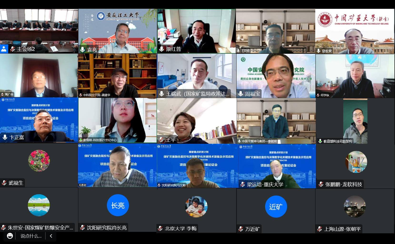 1月8日,由我校牵头承担、王恩元教授作为项目负责人的国家重点研发计划“重大自然灾害防控与公共安全”重点专项“煤矿灾害融合监控与决策数字化关键技术装备及示范应用(2022YFC3004700)”项目启动会暨实施方案论证会在江苏省徐州市以线上线下相结合的方式召开。
